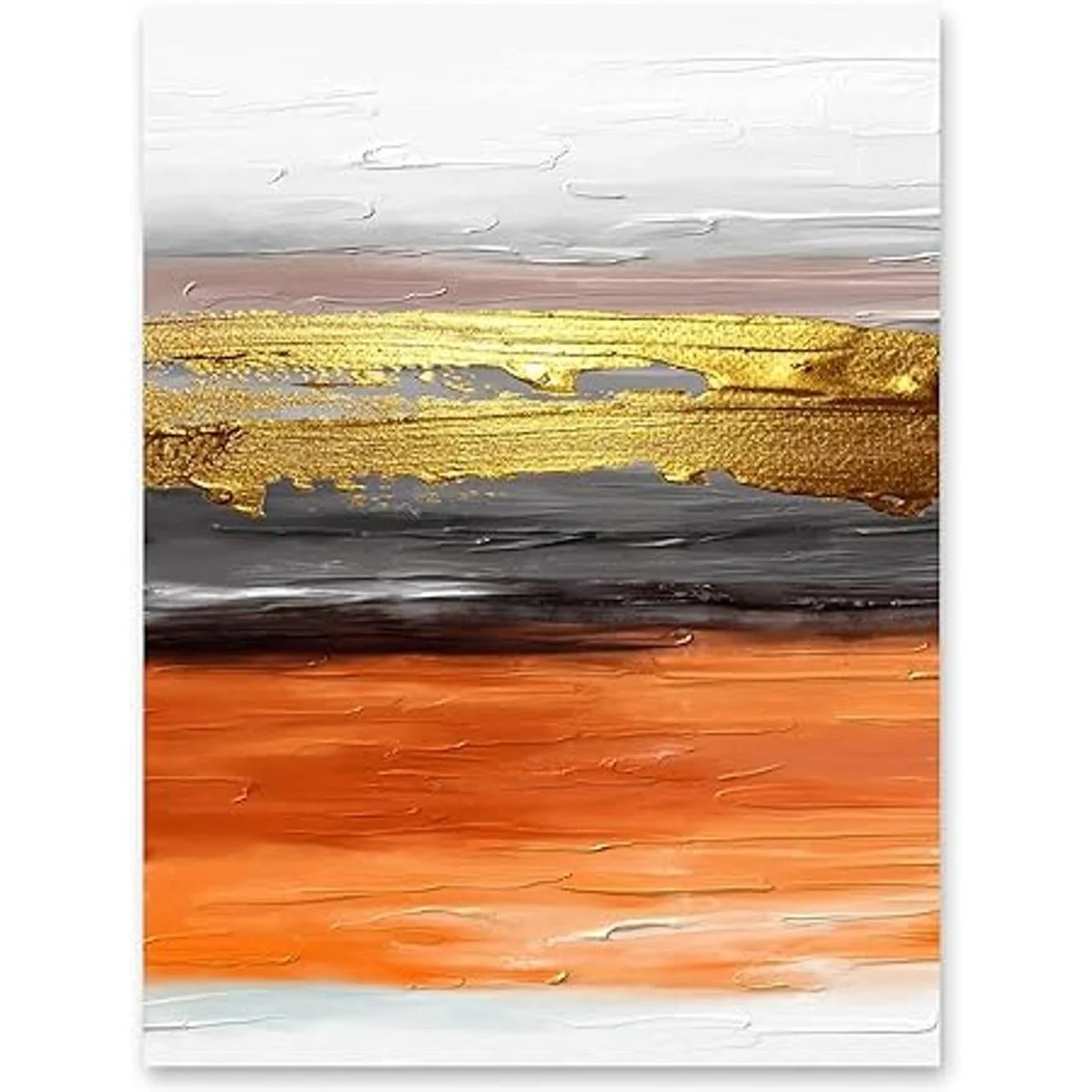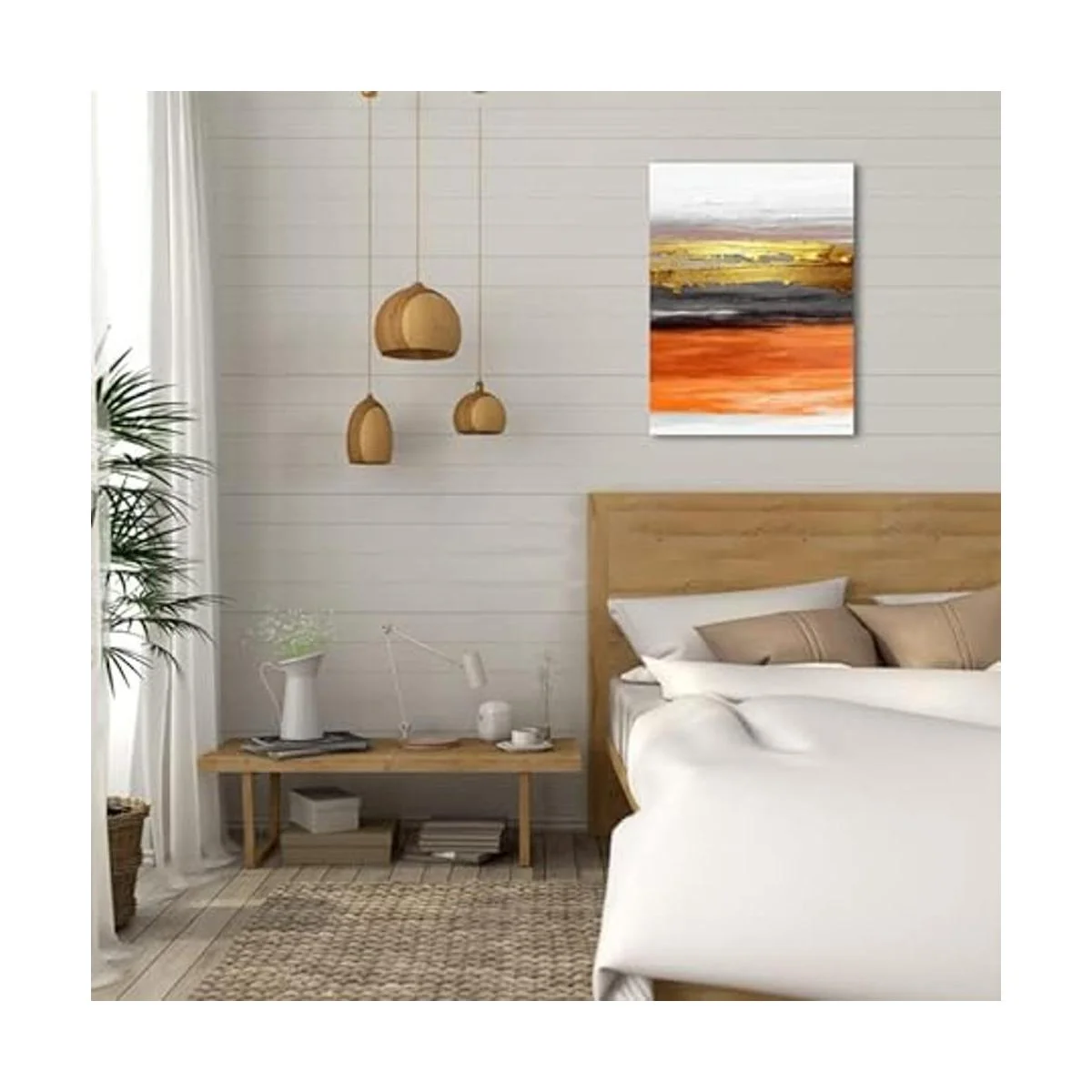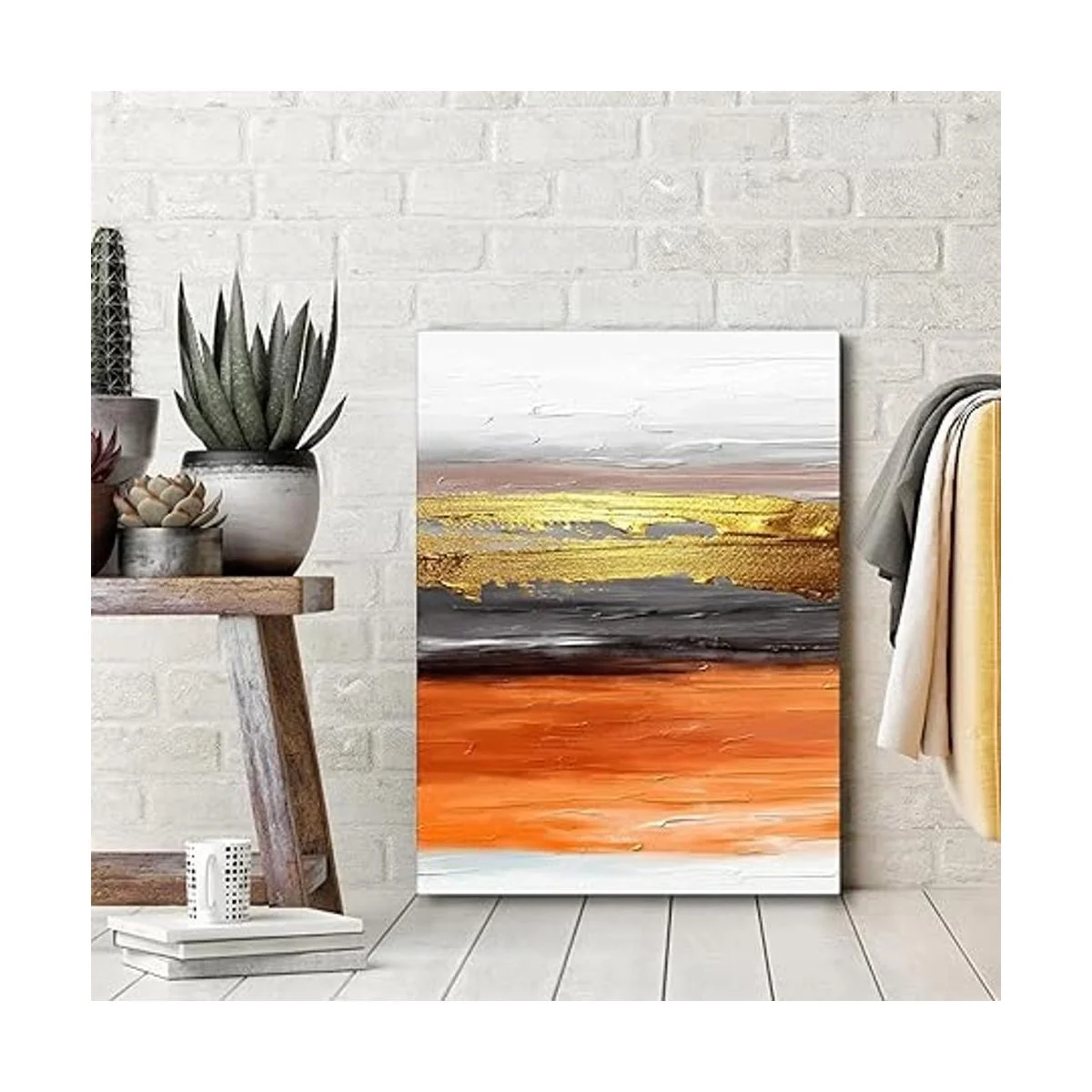 YPY Lienzo abstracto para pared, pintura al óleo hecha a mano naranja y dorado, para decoración del hogar, sala de estar, dormitorio