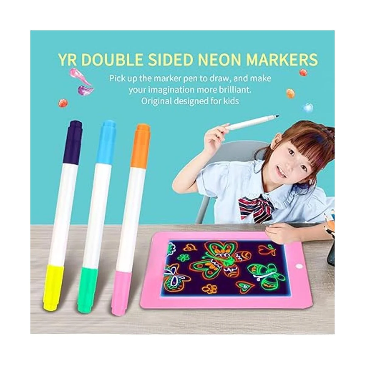 YR Bolígrafos de neón de doble cara para tablero LED iluminado, marcadores de neón aplicables para dibujar, bocetar, crear, garabatear, arte, escribir, tableta de aprendizaje, paquete de 12