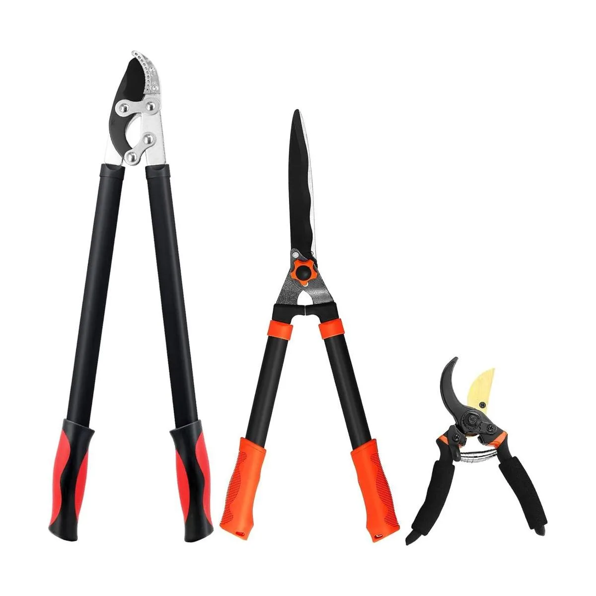 YRTSH Juego combinado de tijeras y podadora de setos, herramienta de jardinería de 3 piezas, kit de cuidado de árboles y arbustos resistente para patio, jardín y césped, cortadores de setos profesionales para jardinería interior y exterior