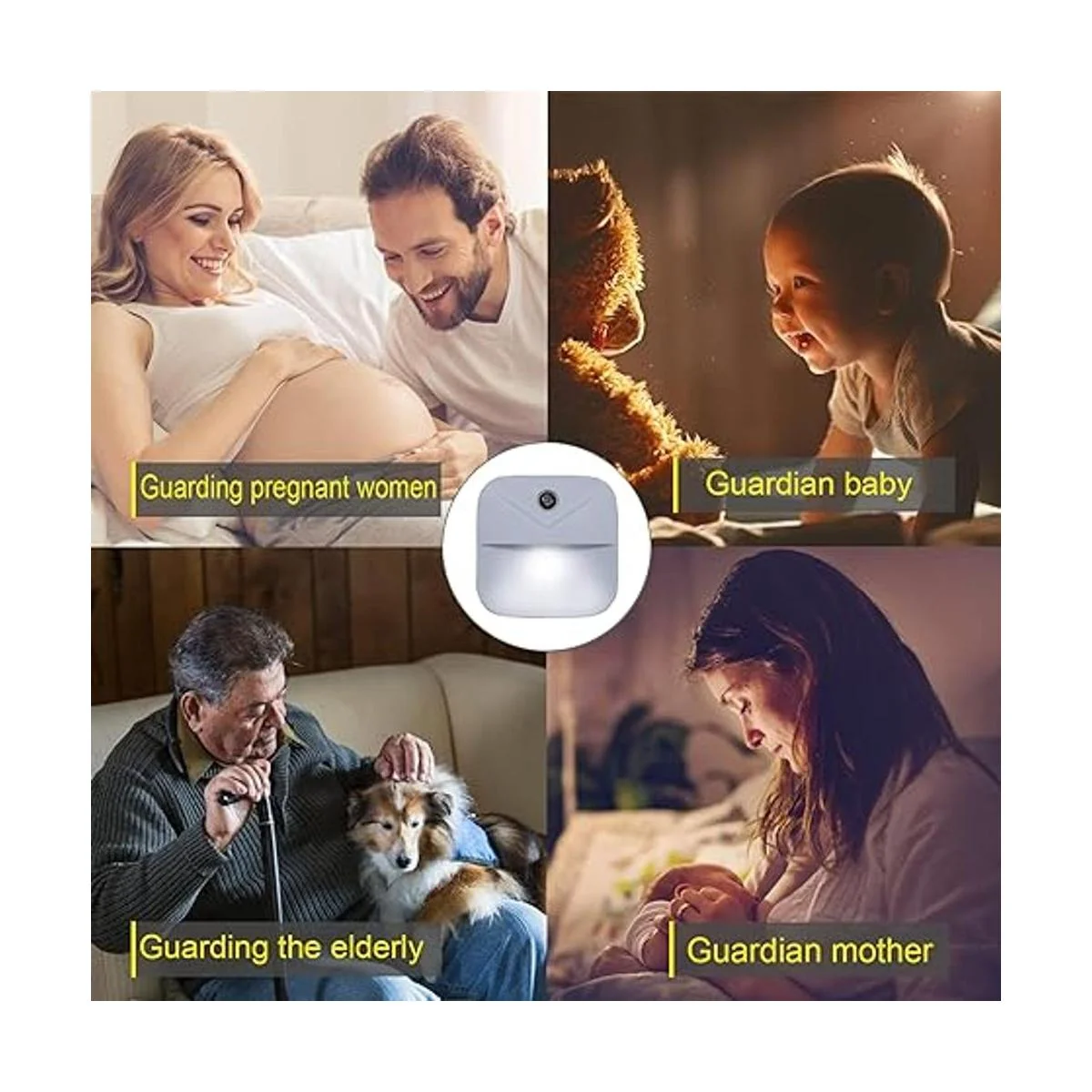 Mantén a los miembros de la familia más seguros: todas estas lámparas LED de noche están integradas con sensor inteligente del atardecer al amanecer, las luces LED se encienden automáticamente cuando detecta que hay una luz baja, manteniendo a tu familia más segura al caminar por la noche, especialmente para niños, mujeres embarazadas, ancianos.