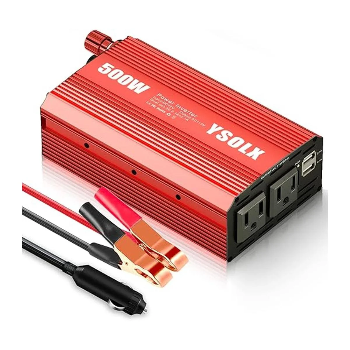 YSOLX Inversor de corriente de 500 W, convertidor de corriente continua de 12 V a 110 V CA con 2 puertos USB y 2 salidas de CA, accesorios esenciales para viajes por carretera