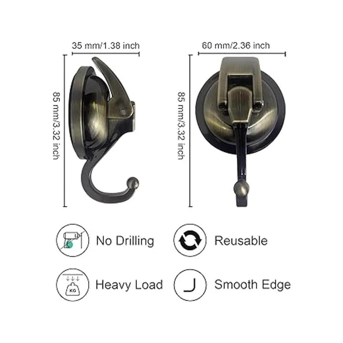 YSSILADI Paquete de 4 ganchos de ventosa al vacío, resistentes al vacío, ganchos de vidrio para ventana, cocina, baño, reutilizables, sin perforar, para toallas, lufah, bata, decoración de corona bronce, paquete de 4