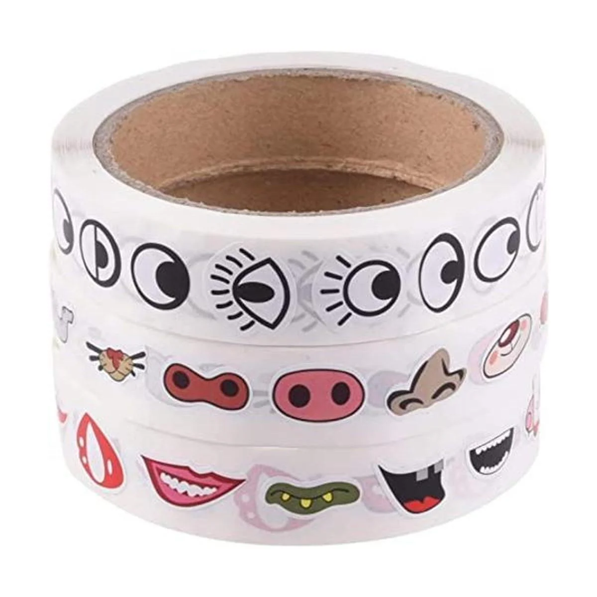 YTYKINOY 3 rollos, 3000 unidades, colorido, nariz, boca, bonitas calcomanías autoadhesivas de dibujos animados, calcomanías para manualidades, juguetes y decoración del hogar hechos a mano, 3000 unidades