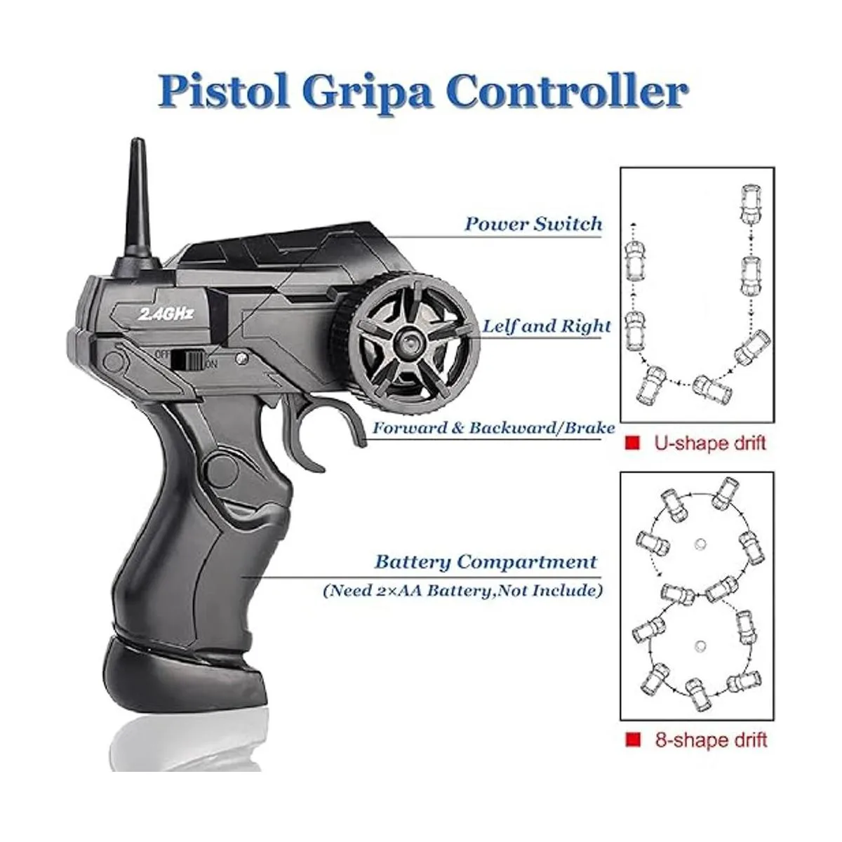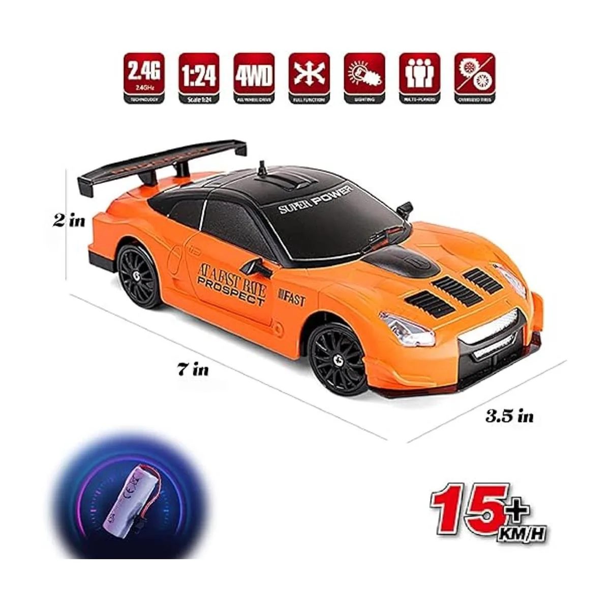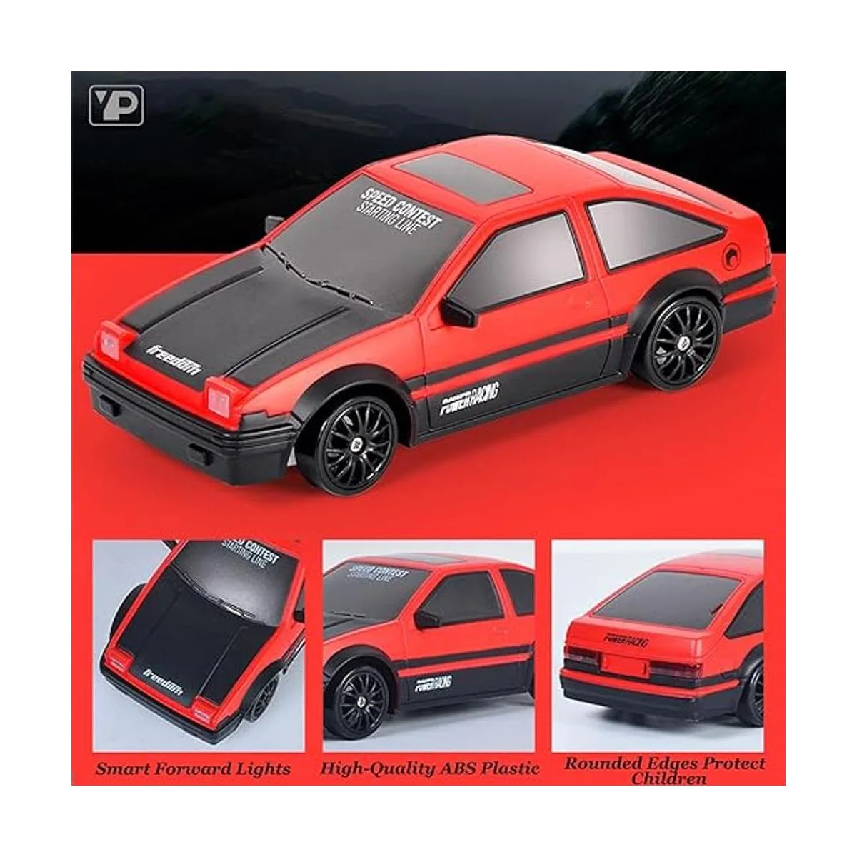 Coche rápido recargable: coche de deriva RC de función completa con batería recargable de 3.7 V 500 mAh y luces LED frías. Adelante, marcha atrás, giro izquierdo/derecho, luces LED delanteras, deriva en forma de U, figura 8, tracción en todas las ruedas.
