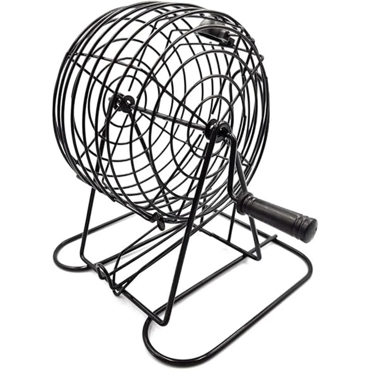 Yuanhe Juego de juego de bingo de lujo, jaula de metal de 6 pulgadas con tablero de llamadas, 5 tarjetas de obturador, 75 bolas de colores, para juegos de grupo grande
