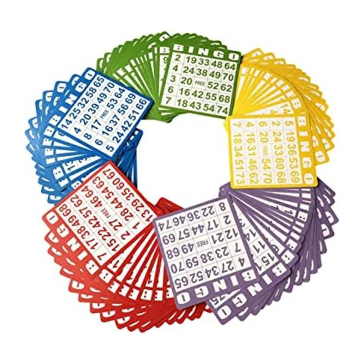 Juego de 100 tarjetas de bingo de colores mixtos cartón duro