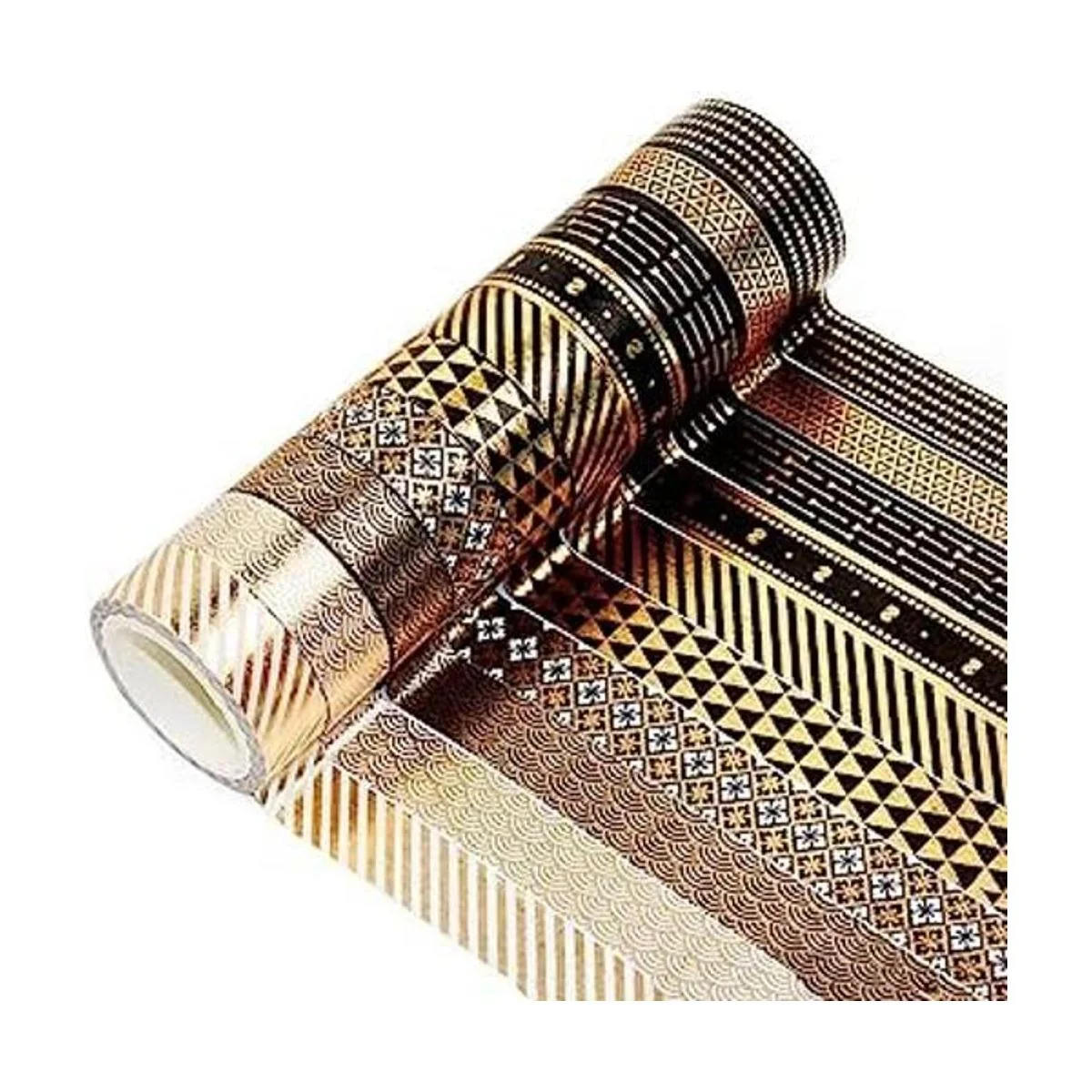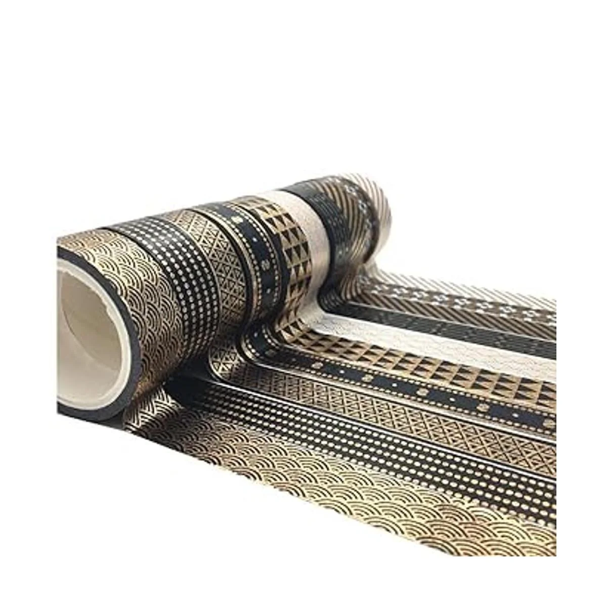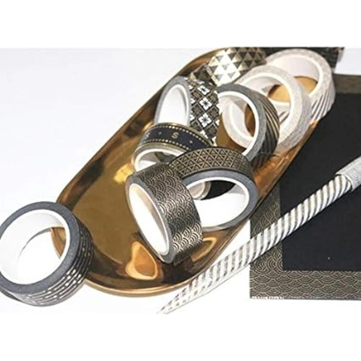 Diseño: esta adorable cinta washi con papel de aluminio negro y dorado dejará que tu creatividad brille. Impreso diferentes patrones encantadores con diseño de moda. Si sigues las tendencias de manualidades y tienes una imaginación salvaje, esta cinta será la mejor opción.