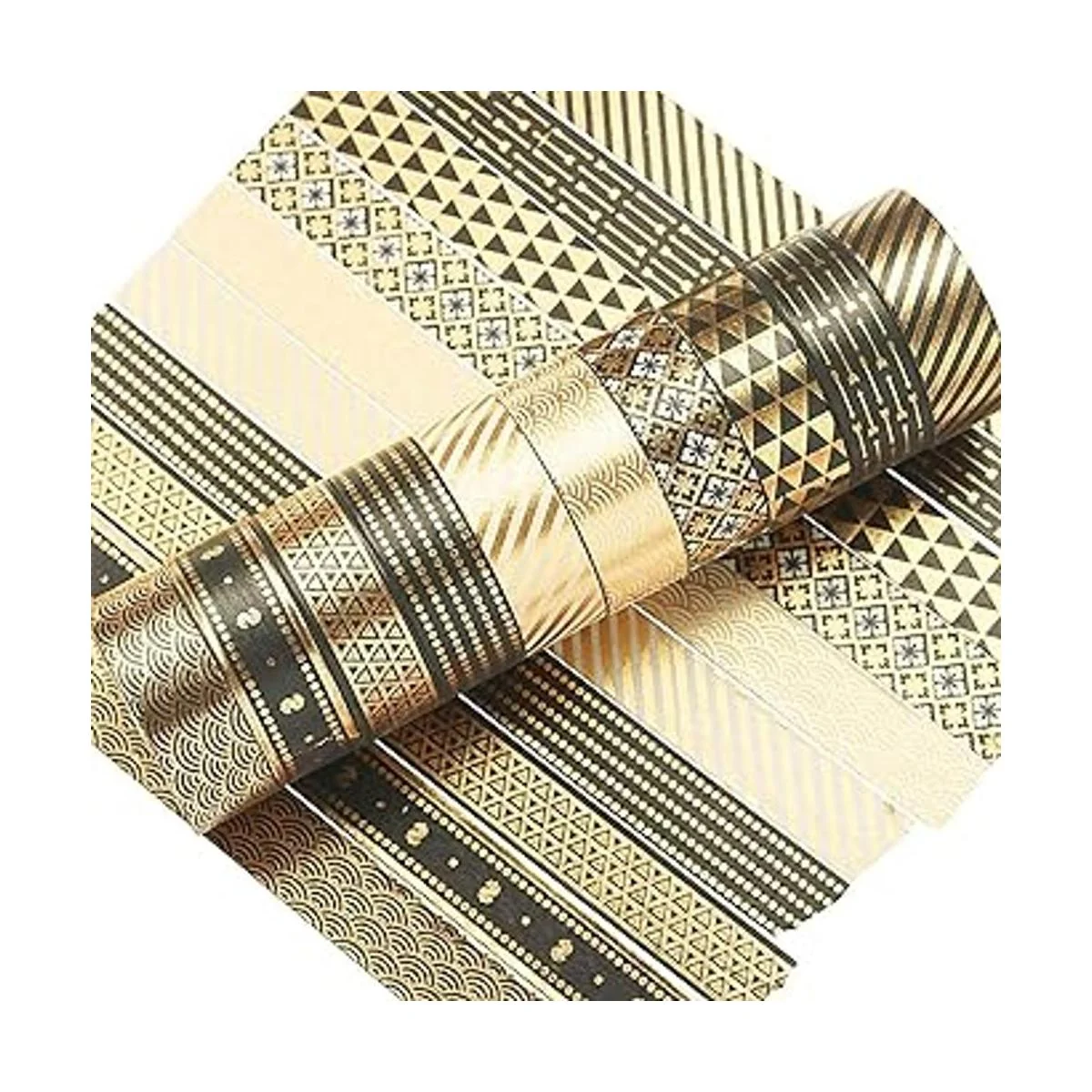 YUBX Juego de 10 rollos de cinta washi de color negro y dorado para manualidades, diarios, planificadores, álbumes de recortes, envoltura negro y dorado