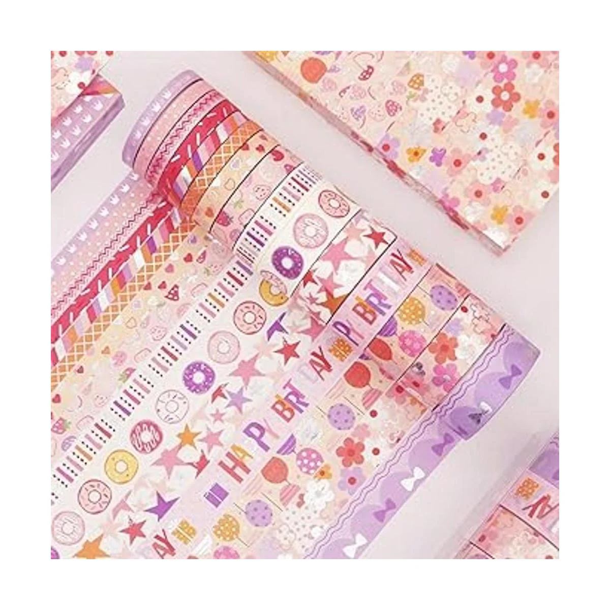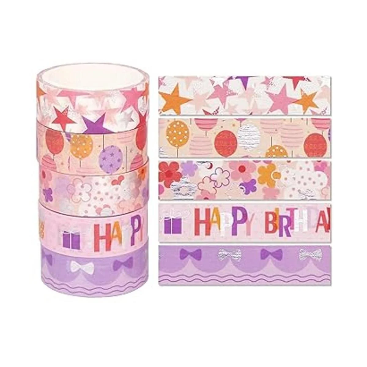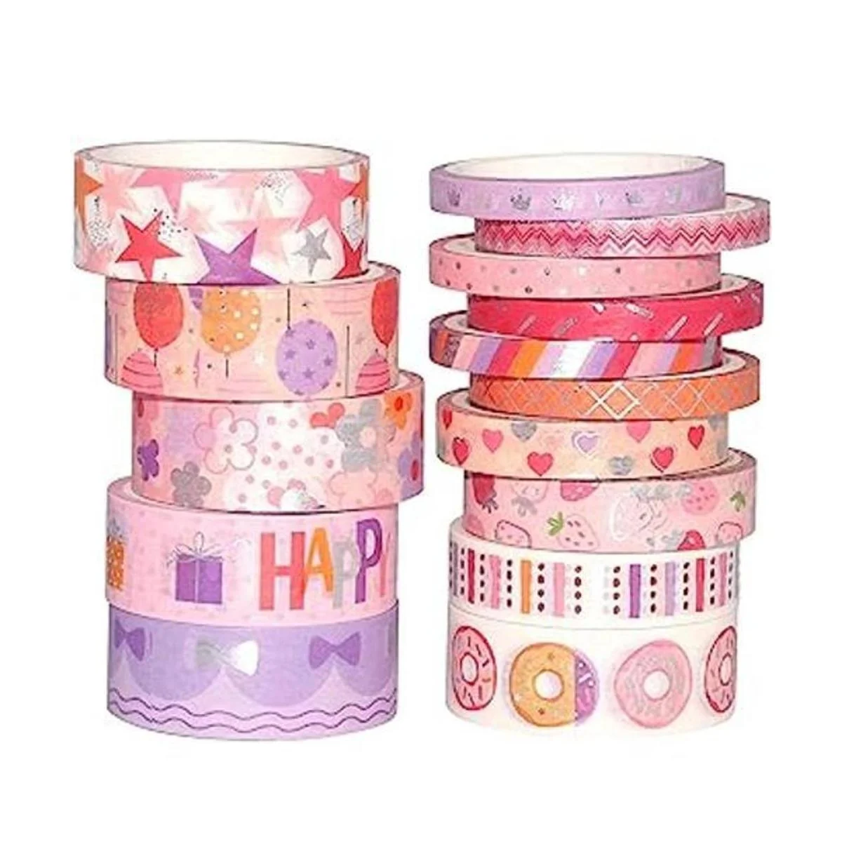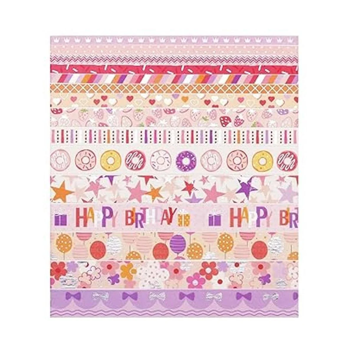 YUBX Juego de 15 rollos de cinta adhesiva decorativa para cumpleaños, manualidades, cuadernos de bala, planificadores, álbumes de recortes, envolver