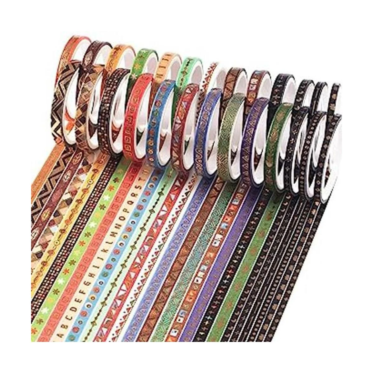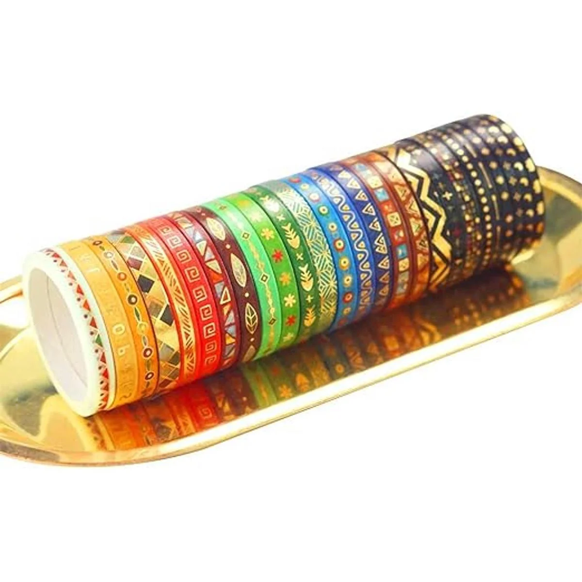 YUBX Juego de 26 rollos de cinta washi de tótem tribal tribal de papel de aluminio dorado indio, cinta decorativa delgada para álbumes de recortes de 0.118 in0.197 in de ancho para proyectos de arte de manualidades, diario, envoltura de regalos