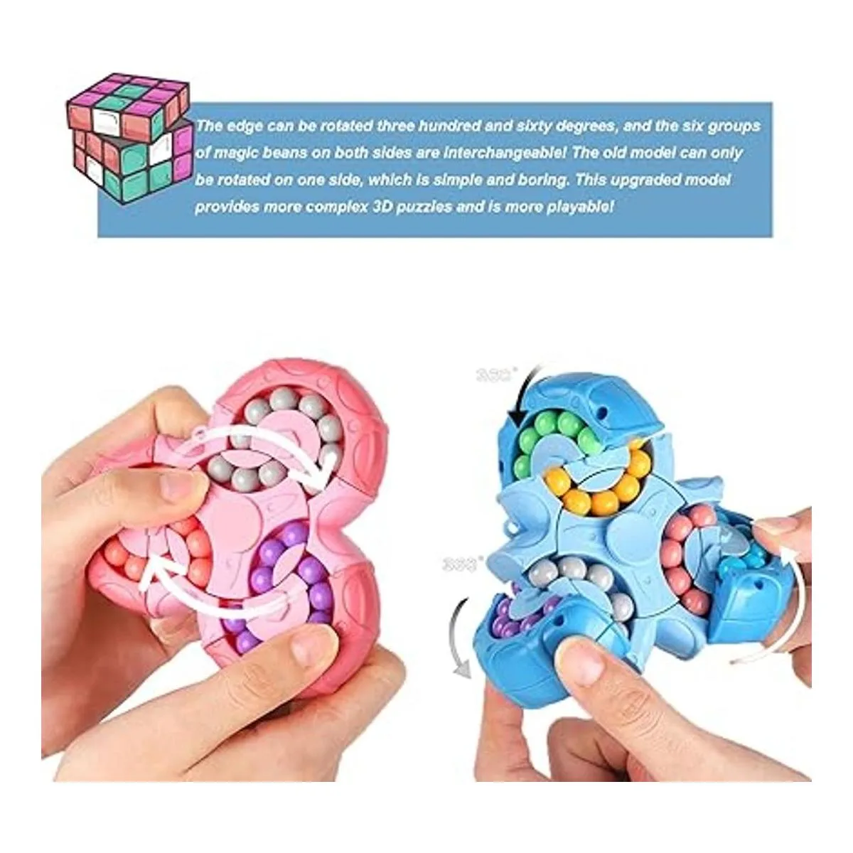 YUDANSI Juguete giratorio de cubo para dedos, giratorio 2 en 1, juguete giratorio de frijoles mágicos, juego de bola de cubo mágico de forma especial, regalo para niños y niñas de 3 años, adolescentes y adultos para Navidad Año Nuevo
