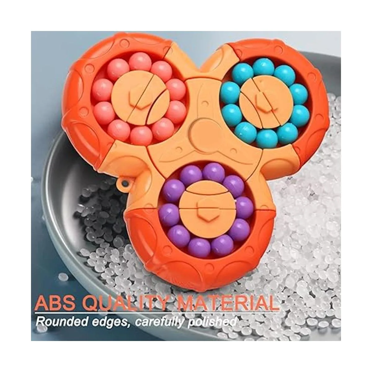 Material: el grano mágico está hecho de ABS de alta calidad, y la forma general es elegante, sin bordes afilados. Hay un total de seis colores en seis lados, y las cuentas están firmemente incrustadas y no se caen