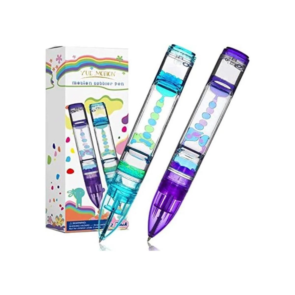 YUE ACTION Bolígrafo de temporizador de movimiento líquido, paquete de 2 unidades, temporizador líquido, bolígrafo antiestrés multicolor para juguetes de escritorio de oficina, regalos novedosos, juguetes novedosos azul morado