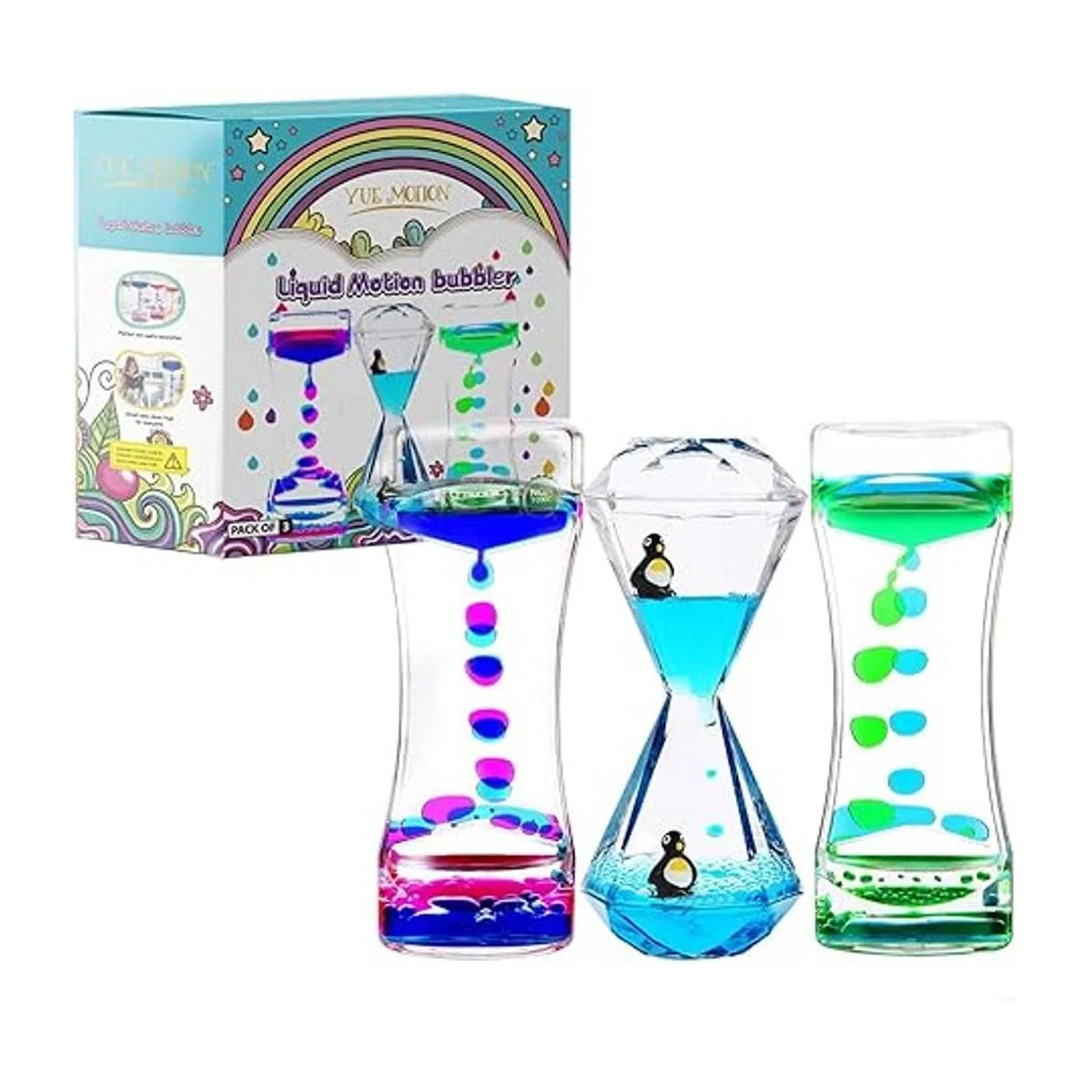 YUE MOTION Temporizador líquido de burbujas de movimiento para juguetes sensoriales, juguete para ansiedad, actividad infantil, juguetes de escritorio calmantes y relajantes, juguetes para autismo, juguetes para personas inquietas con TDAH, colores surtidos, paquete de 3 Estilo 1