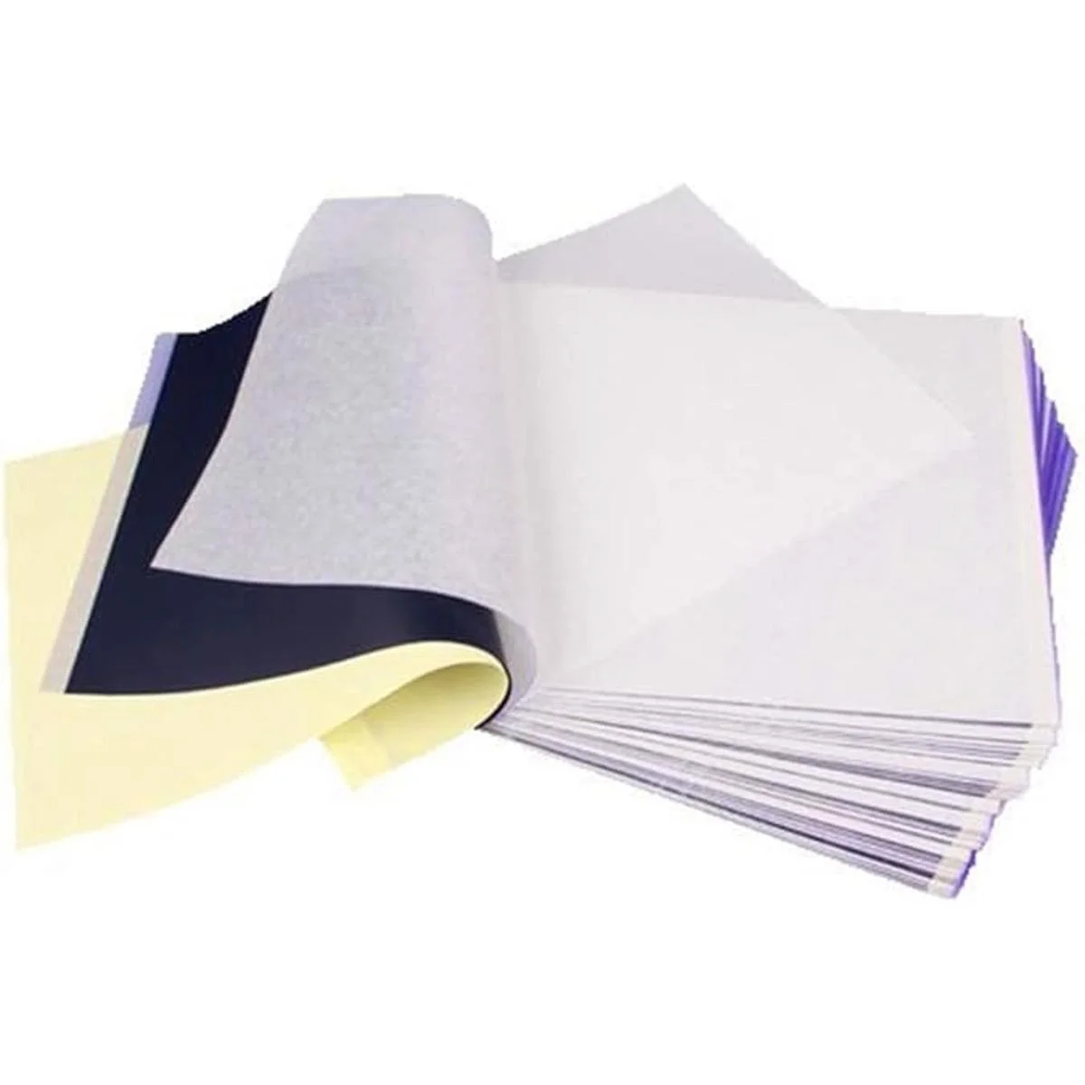 Paquete y tamaño: kit de papel de plantilla de tatuaje que incluye 15 hojas. 8 1/2 x 11 pulgadas, tamaño A4. Los papeles de transferencia profesionales para tatuajes o plantillas son fáciles de usar y divertidos. Papel de rastreo de tatuajes de bricolaje con buen efecto de transferencia. Adecuado para artistas de rastreo de carbono, tatuadores, etc.