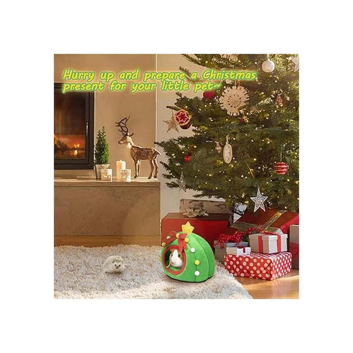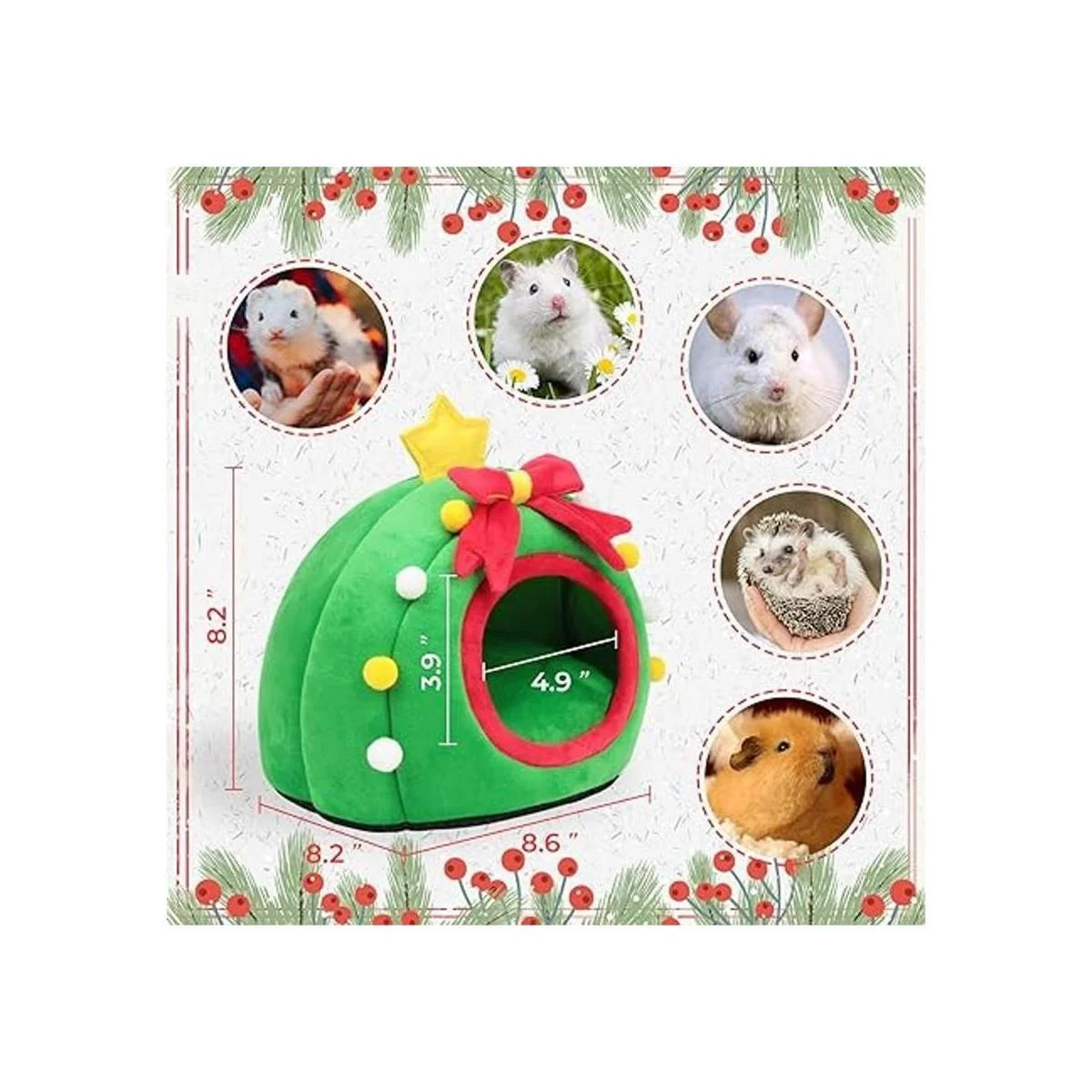 Cama de conejillo de indias: 8.6 x 8.2 x 8.2 pulgadas largo x ancho x alto. El diseño de entrada ancha 4.9 x 3.9 pulgadas proporciona a tus mascotas acceso fácilmente. Este pequeño escondite de cueva de animales es más adecuado para cobayas, hámster, hurón, cavo, erizo, ardilla, chinchilla, conejo enano, conejo joven, deslizador de azúcar de dragón barbudo y otros animales pequeños de tamaño similar.