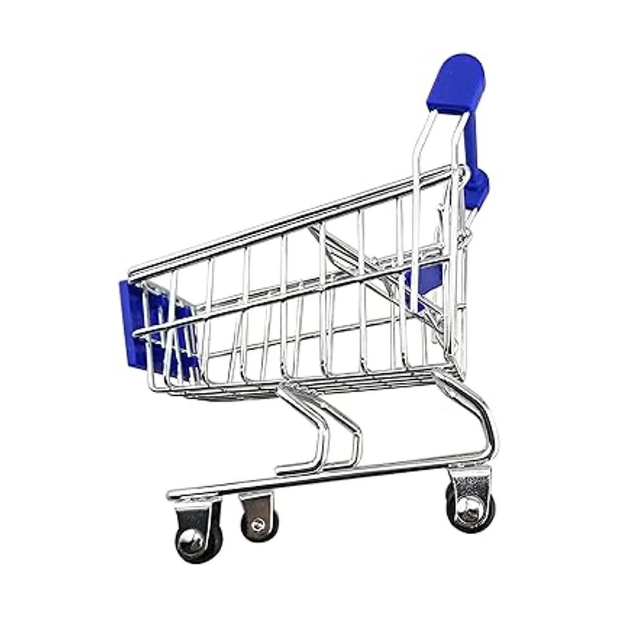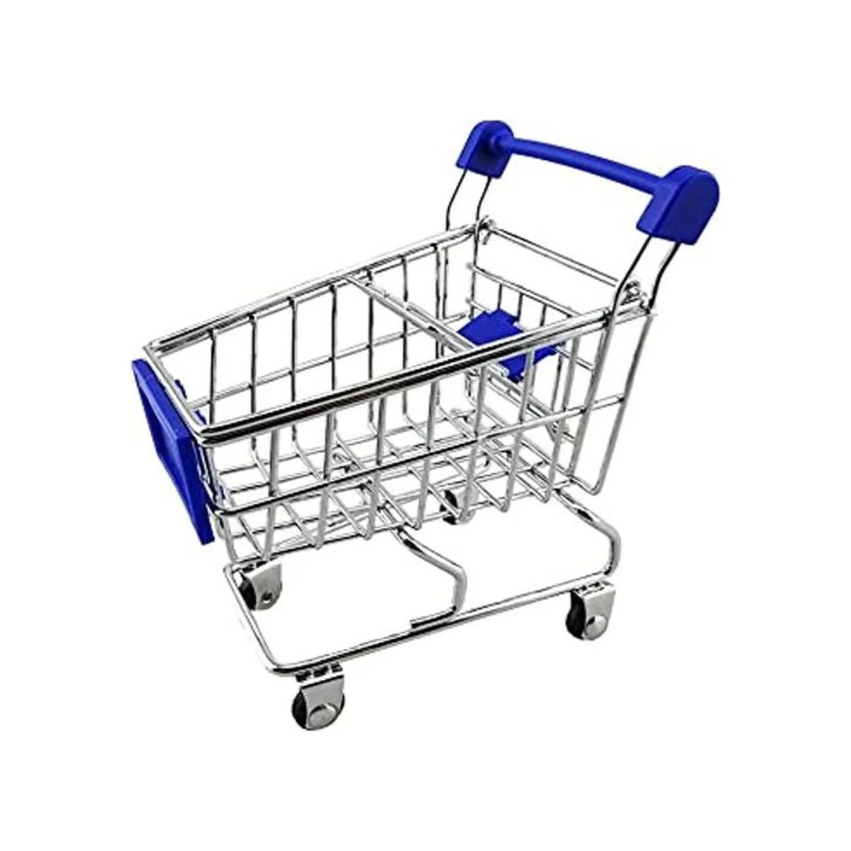 yueton Mini carrito de la compra de supermercado carro utilidad de la compra modo almacenamiento juguete escritorio accesorio y decoración acero inoxidable, color azul