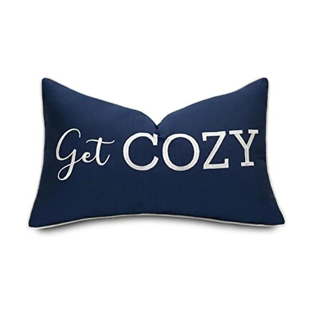 YugTex Get Cozy Sentiment Funda de almohada lumbar bordada 12 x 20 pulgadas, color azul marino