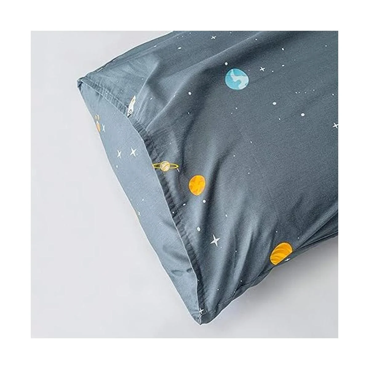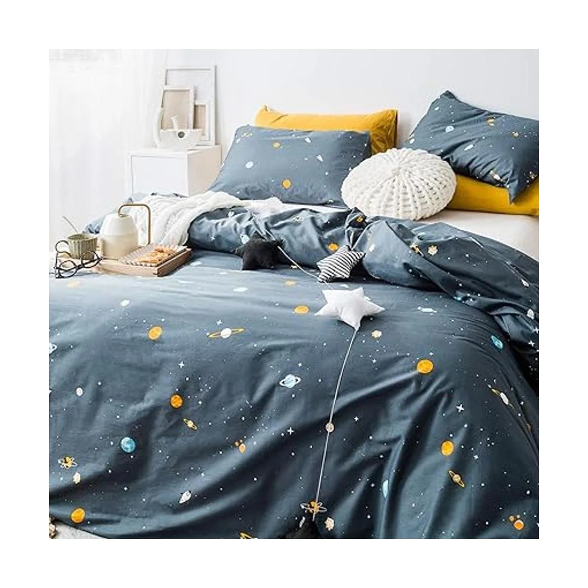 YuHeGuoJi Juego de funda de edredón verde azulado celestial, tamaño Queen, 100 % algodón, lindo planeta, suave juego de 3 piezas, 1 funda de edredón con estampado de estrellas espaciales de dibujos animados con lazos de cremallera, 2 fundas de almohada, ropa de cama celestial transpirable