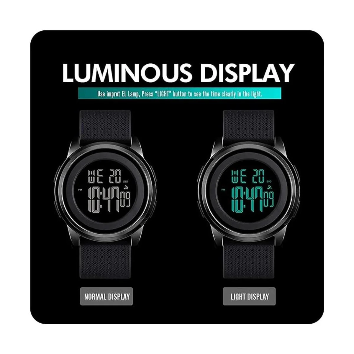 Reloj deportivo digital ultradelgado: diseño minimalista, caja de reloj ultradelgada, aspecto minimalista, único y llamativo. Pantalla de números grandes con dial luminoso y grande, muestra la hora claramente incluso en la oscuridad.