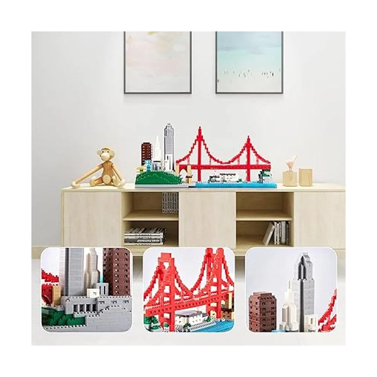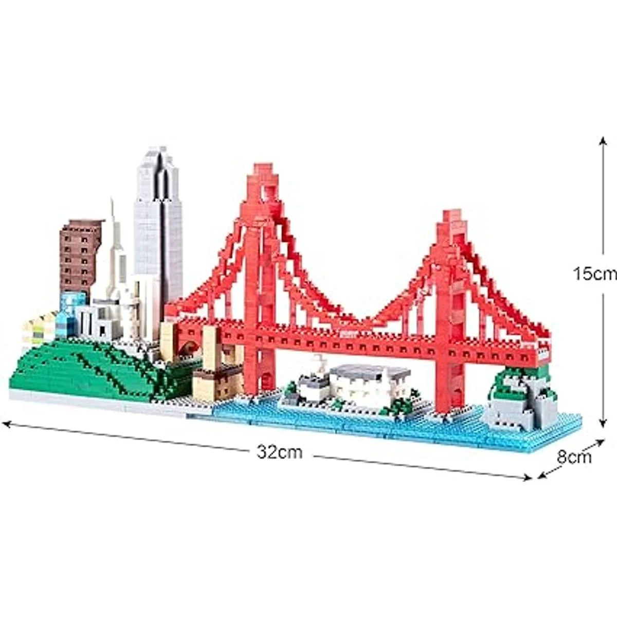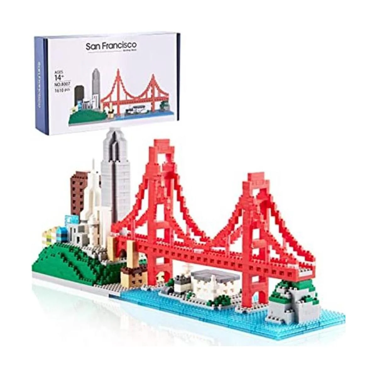 YUJNS Architecture Skyline Collection Juego de microbloques de San Francisco Golden Gate Bridge Building Modle Kit, regalo de juguete para niños, adolescentes y adultos 1610 piezas