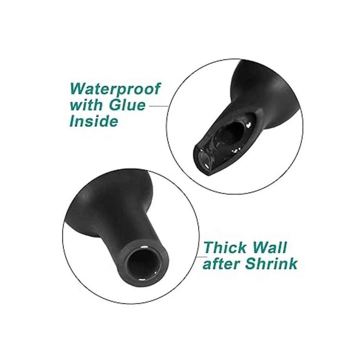 Fácil de usar y rápido: solo tienes que utilizar una de calor para calentar el tubo uniformemente hasta que envuelva el cable o conector firmemente. Tiene una relación termorretráctil 3:1 y se encogerá a un tercio de su tamaño original. La temperatura de tu de calor debe rondar los 212 F para que el pegamento interior se suavice y selle la conexión.