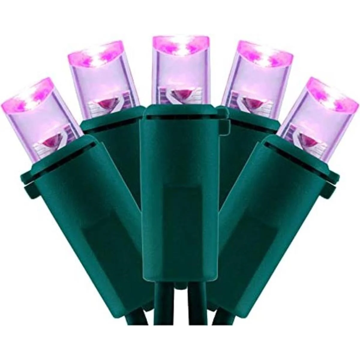 YULETIME Luces LED de Navidad de gran angular rosa con cable verde, 66 pies, 200 unidades, certificación UL, grado comercial, 0.197 in, juego de luces navideñas rosa cable verde
