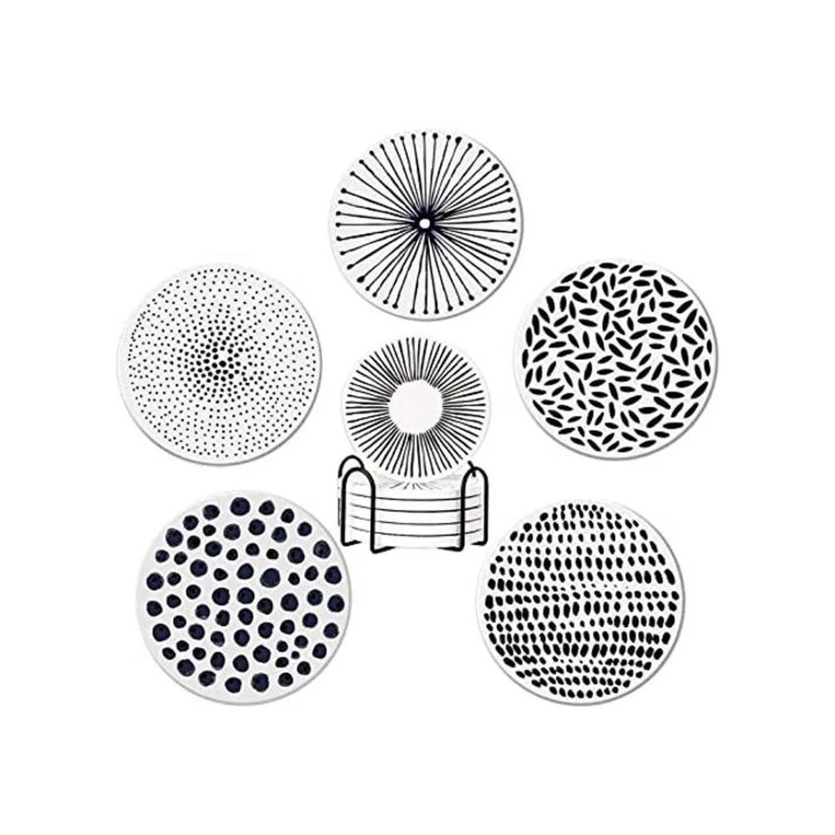 El juego de posavasos incluye: el paquete incluye 6 posavasos de diseño de mármol natural con un soporte, puedes utilizar el soporte para guardar tu juego. Hará que tu hogar esté ordenado y ahorrará espacio.