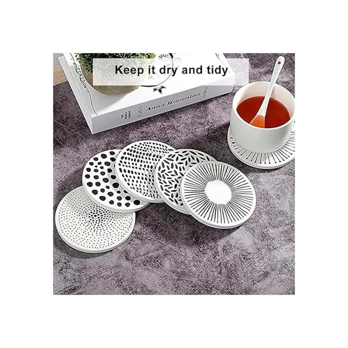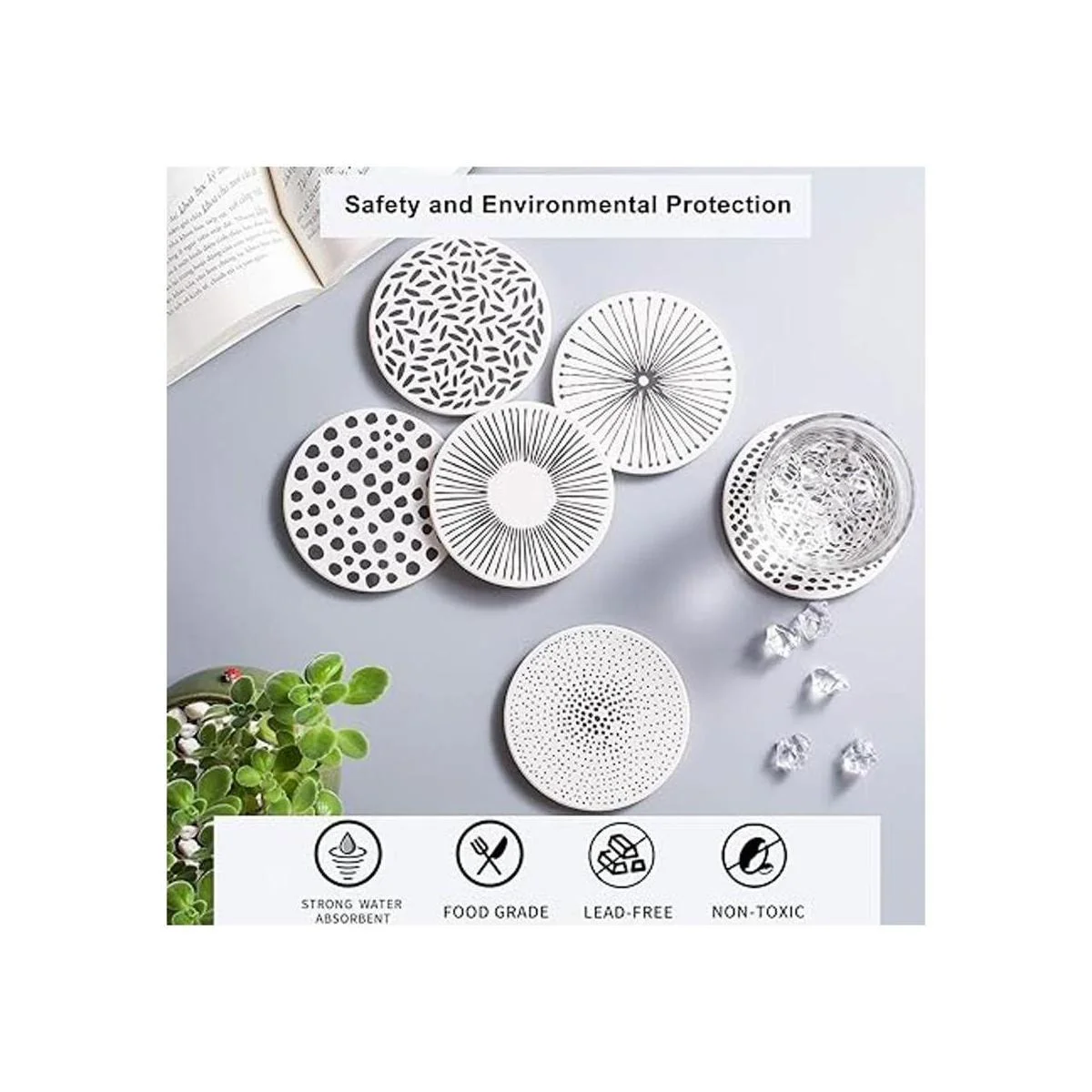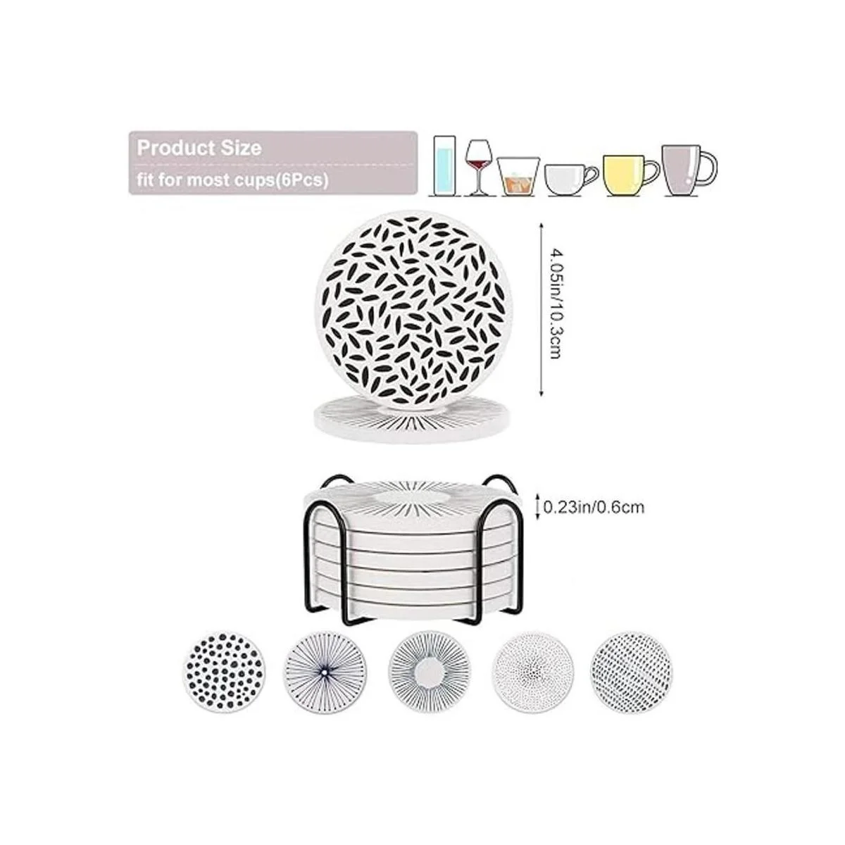YumSur Juego de 6 posavasos con soporte de piedra de cerámica absorbente con base de corcho, resistencia al calor y a los arañazos, decoración para bebidas, posavasos