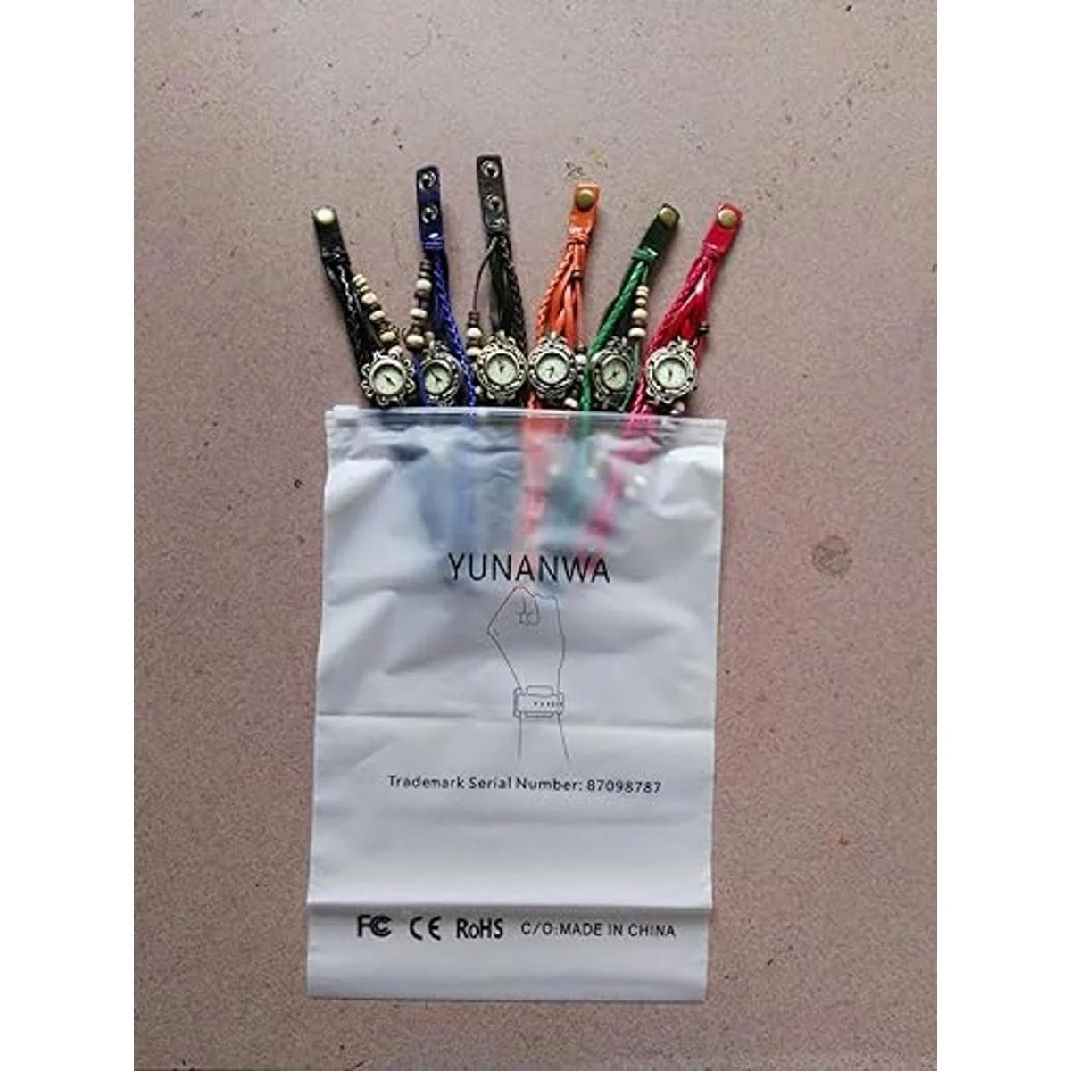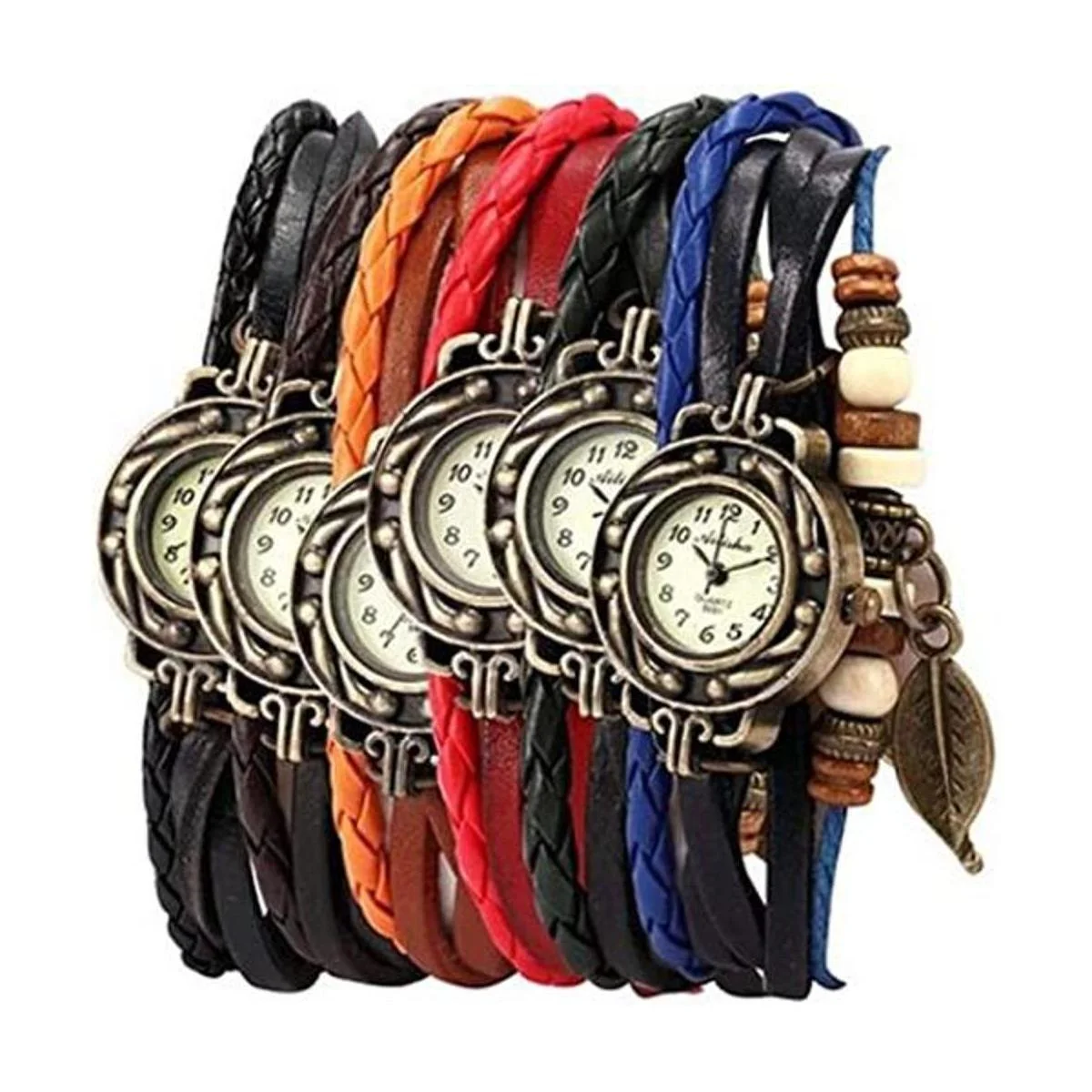 Yunanwa Paquete de 6 relojes de mujer vintage con cuentas envolventes alrededor de la pulsera de cuarzo al por mayor
