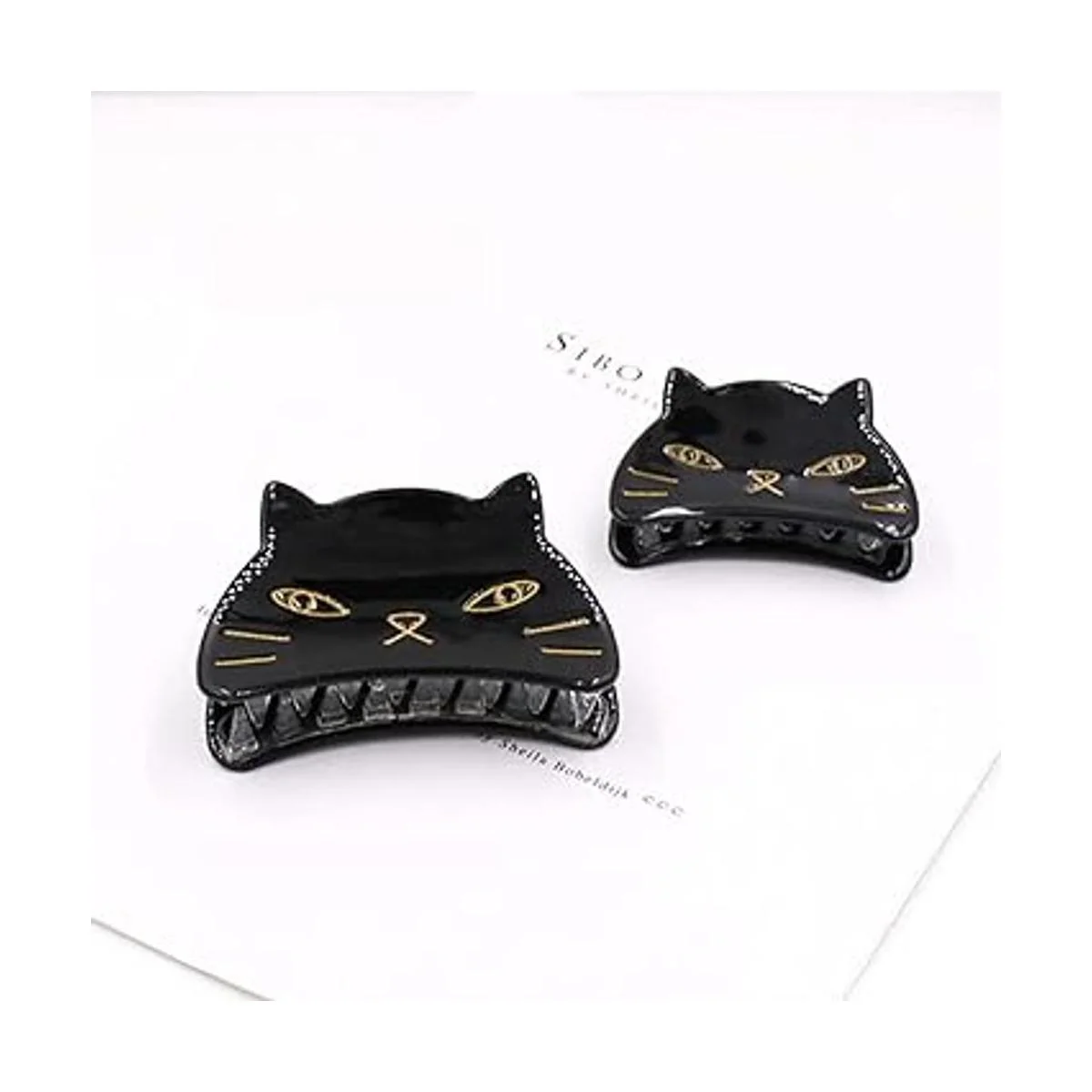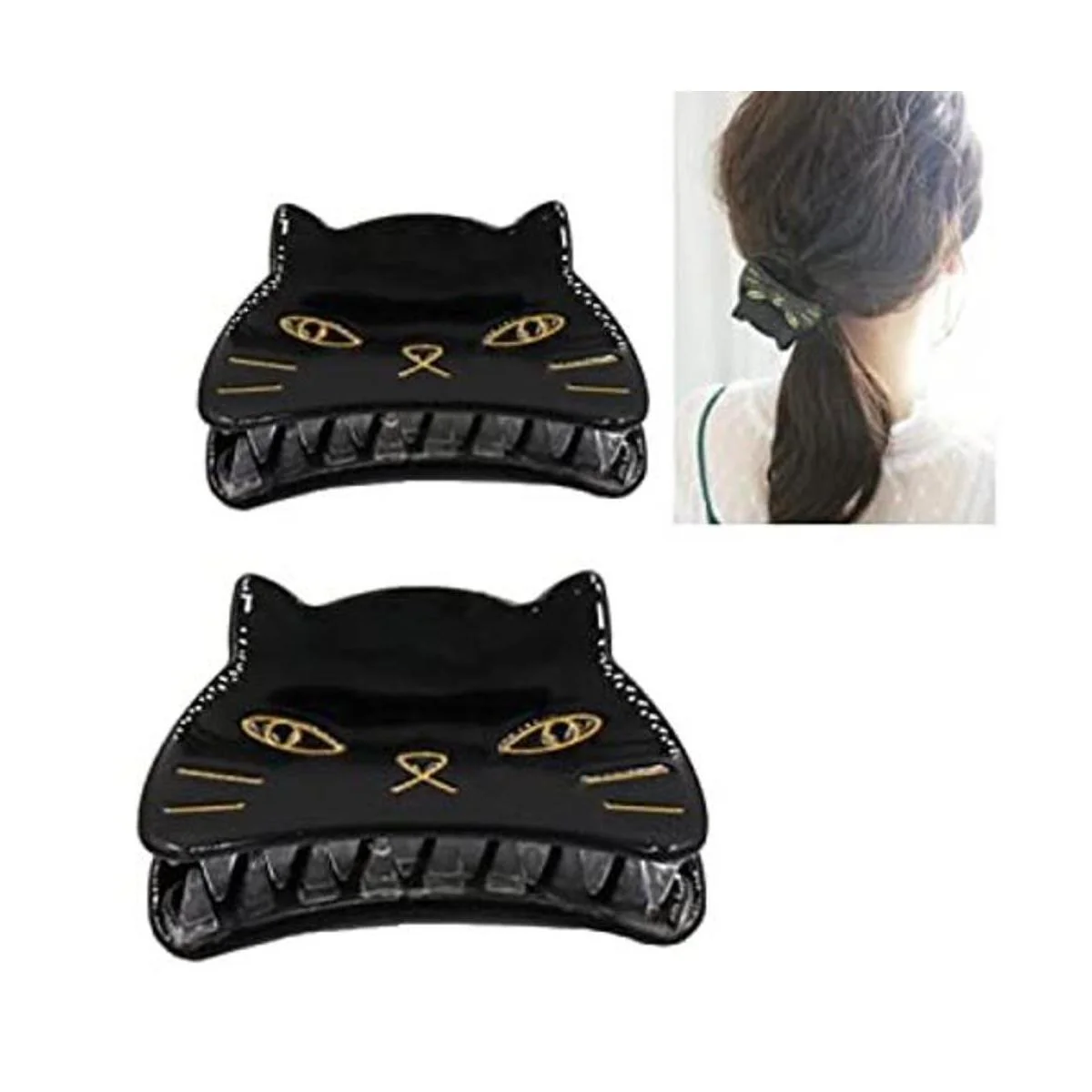Yusier 2 pinzas para el pelo para garra de gato, dos tamaños que se mantienen en su lugar, pinzas de pelo para mujeres y niñas gato negro