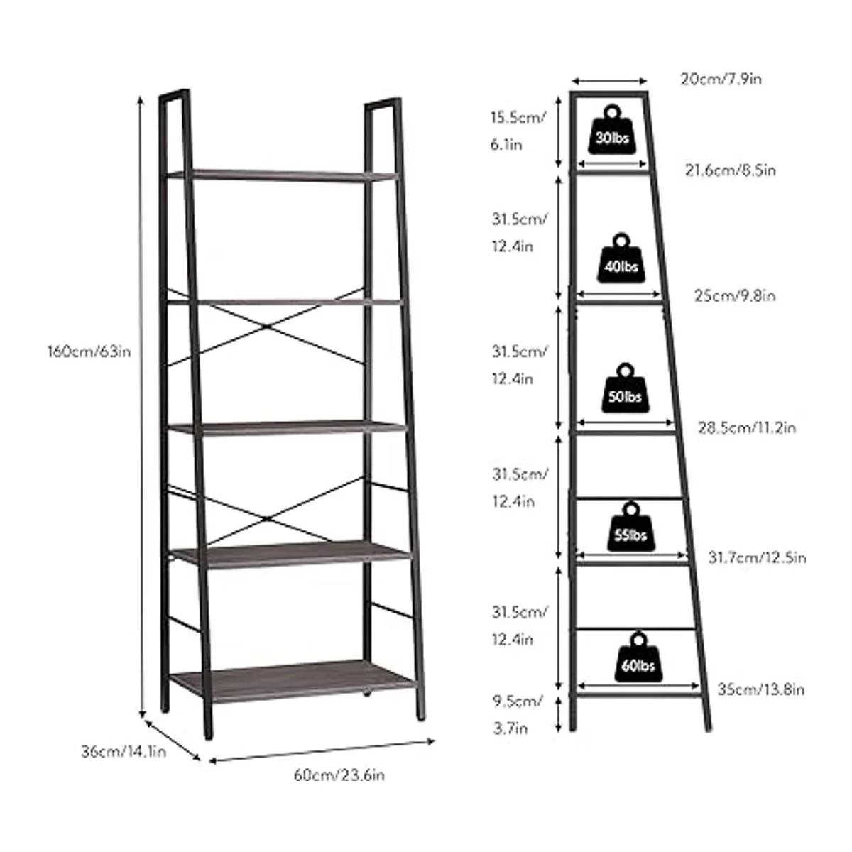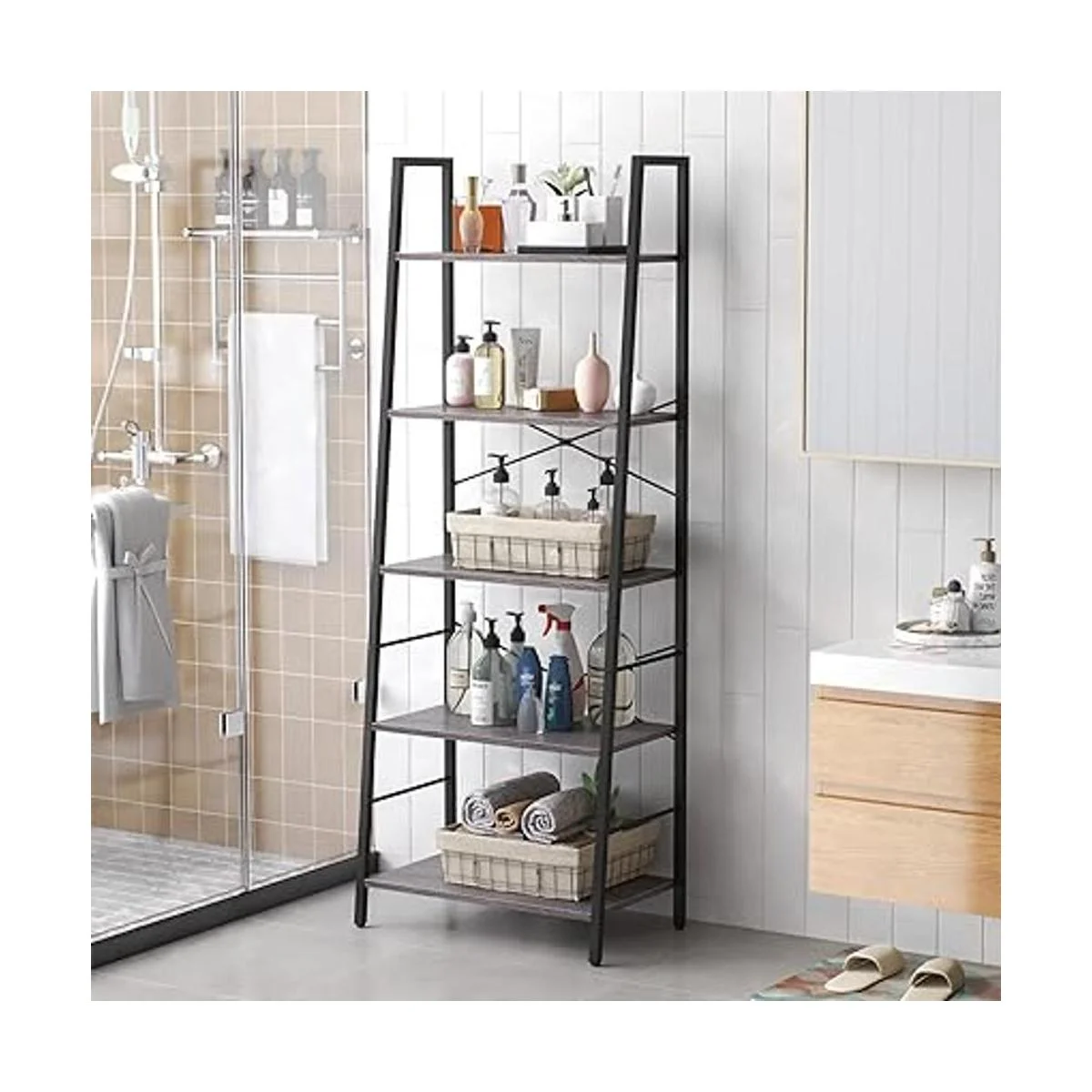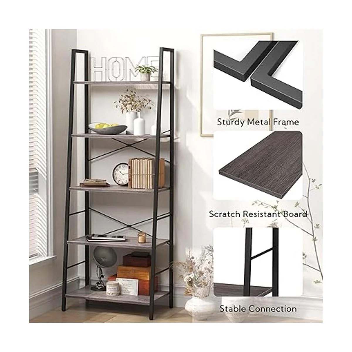 Yusong Estante de escalera, estantería industrial de 5 niveles, estantería de pie independiente, estantes organizadores de utilidad para flores de plantas, muebles decorativos de aspecto de madera con marco de metal para oficina en casa, gris