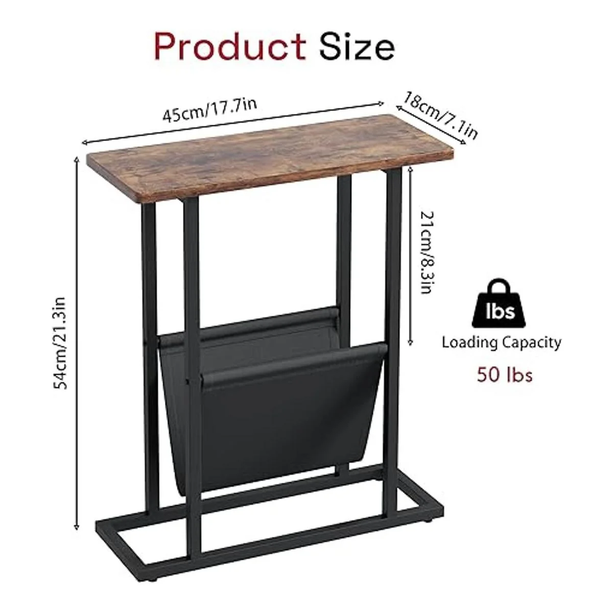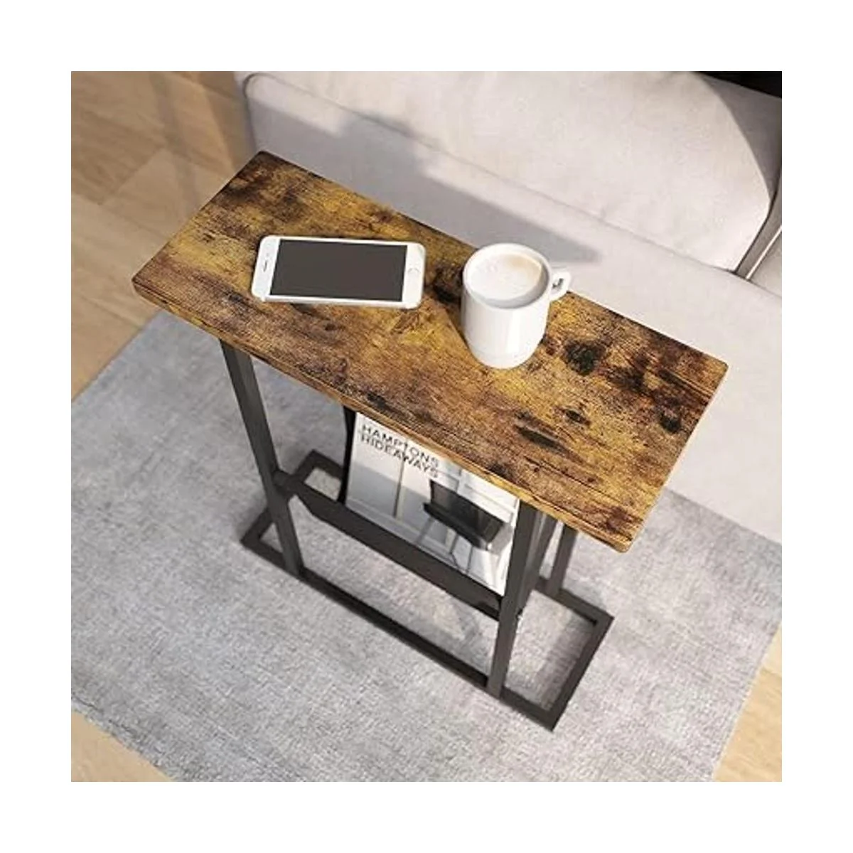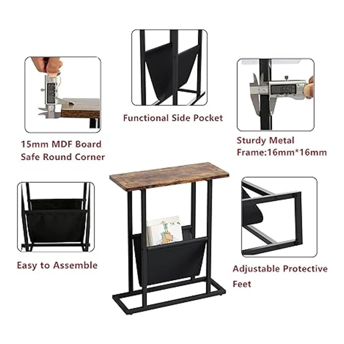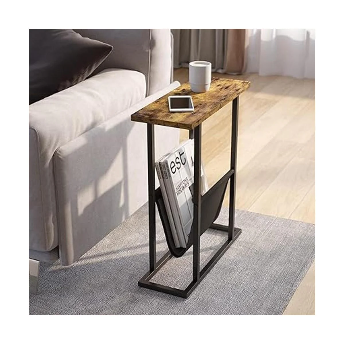 Yusong Mesa auxiliar pequeña y estrecha para espacios pequeños, mesa auxiliar delgada, mesita de revista, mesita de noche con soporte de almacenamiento, sofá de aperitivos Skiny Accent junto a la mesa, marrón rústico