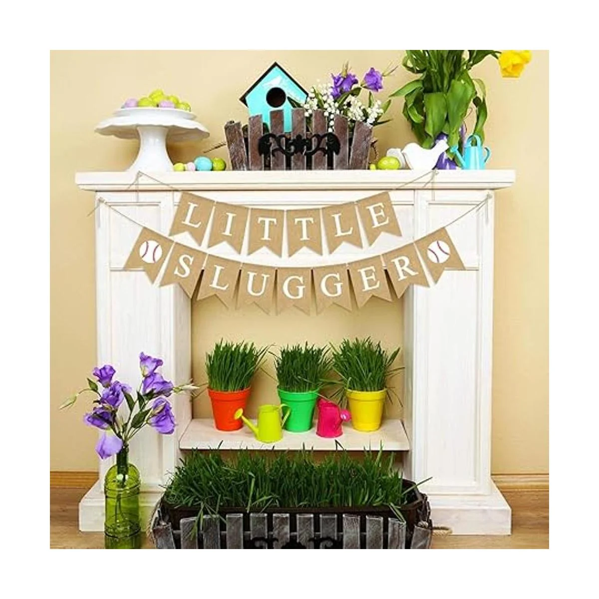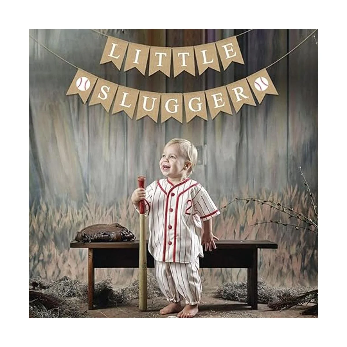 Yute Arpillera Little Slugger Banner Niño Béisbol Tema Bebé Ducha Fiesta Decoración Suministro