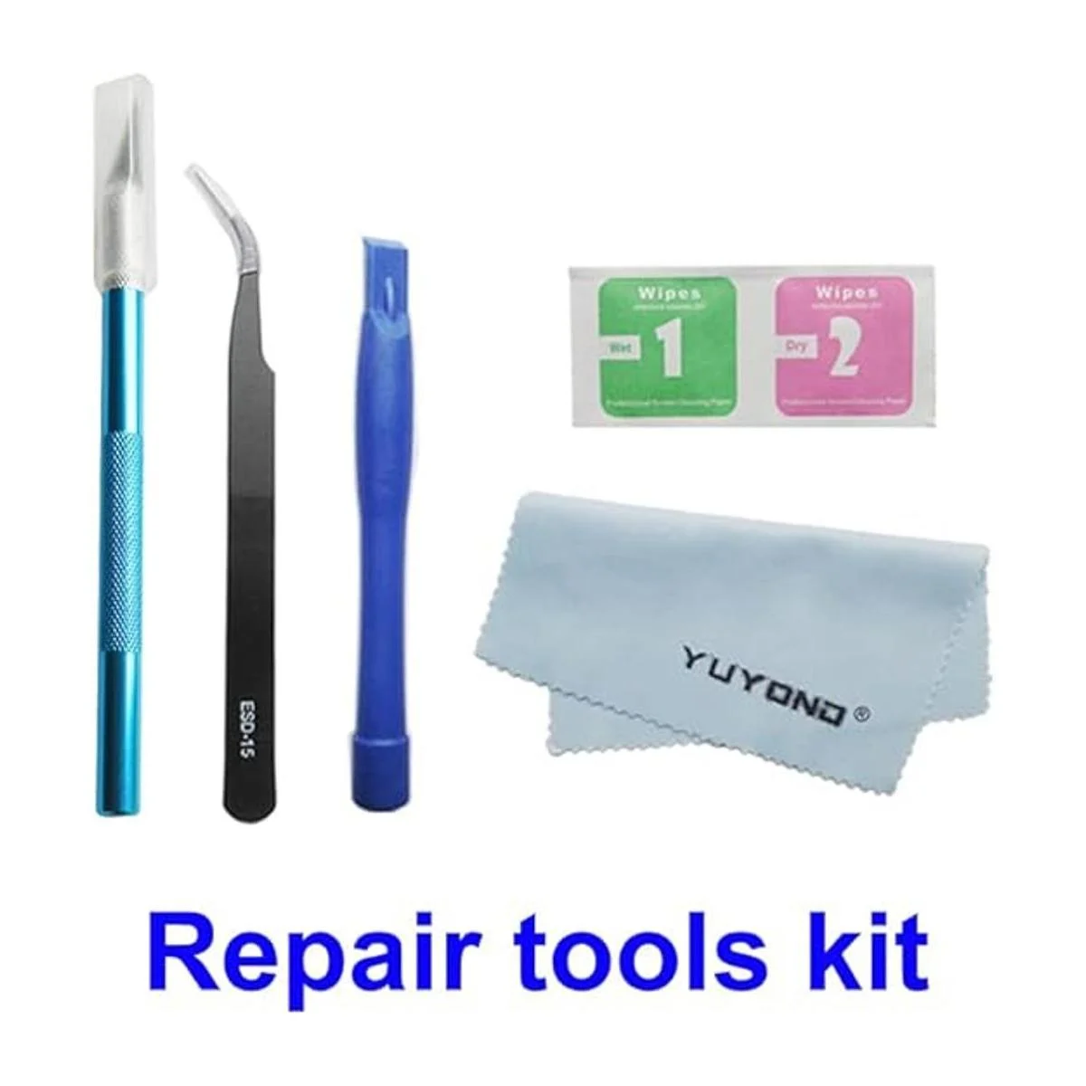 Herramientas de reparación 3 en 1 de alta calidad en el paquete. El kit de herramientas de reparación te ayudará mucho cuando reemplazes la lente de cristal de la cámara trasera para iPhone 13 y para iPhone 13 mini