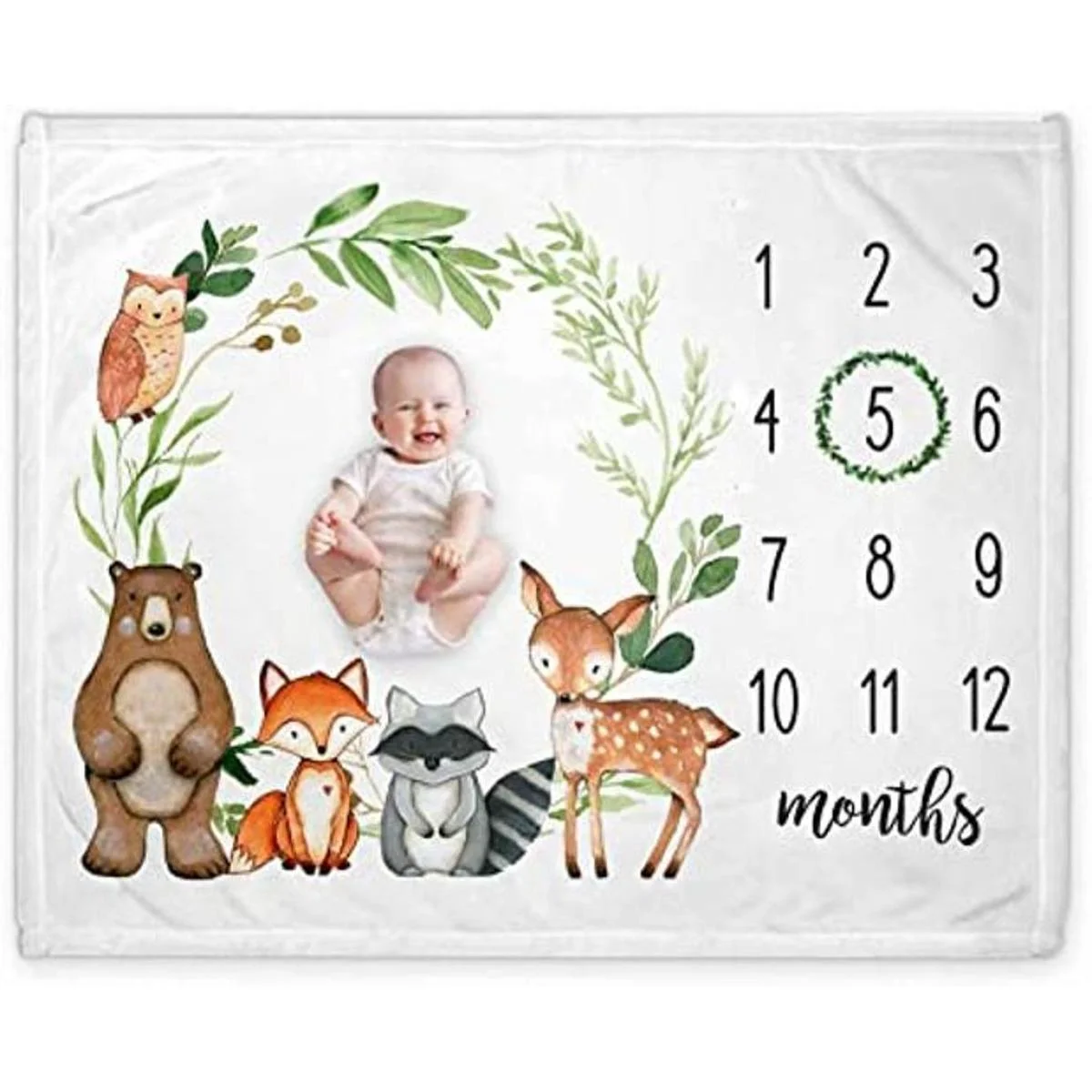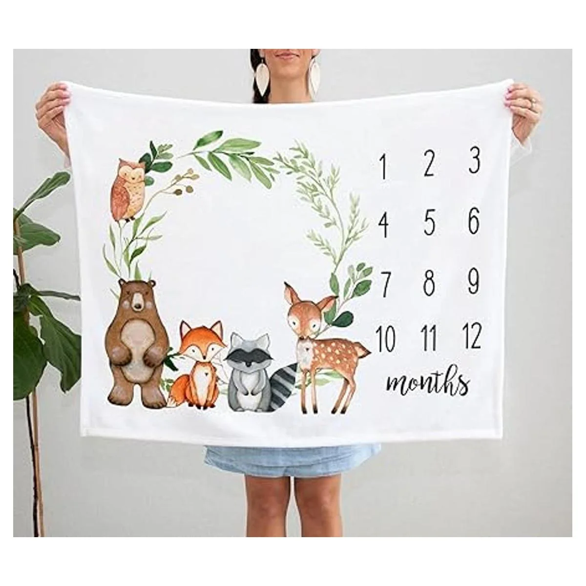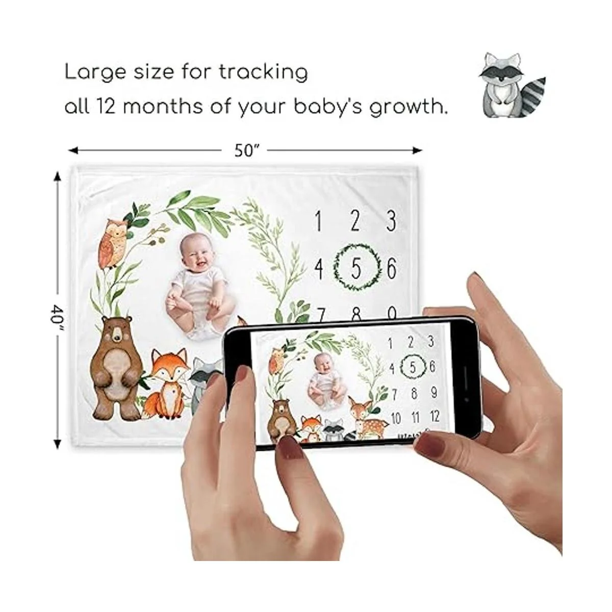 Yuzioey Manta mensual para bebé, diseño de animales del bosque, regalo para nuevas mamás, baby shower, Watch Me Grow Baby Boy Greenery Woodland, incluye marcador 50 x 40 pulgadas
