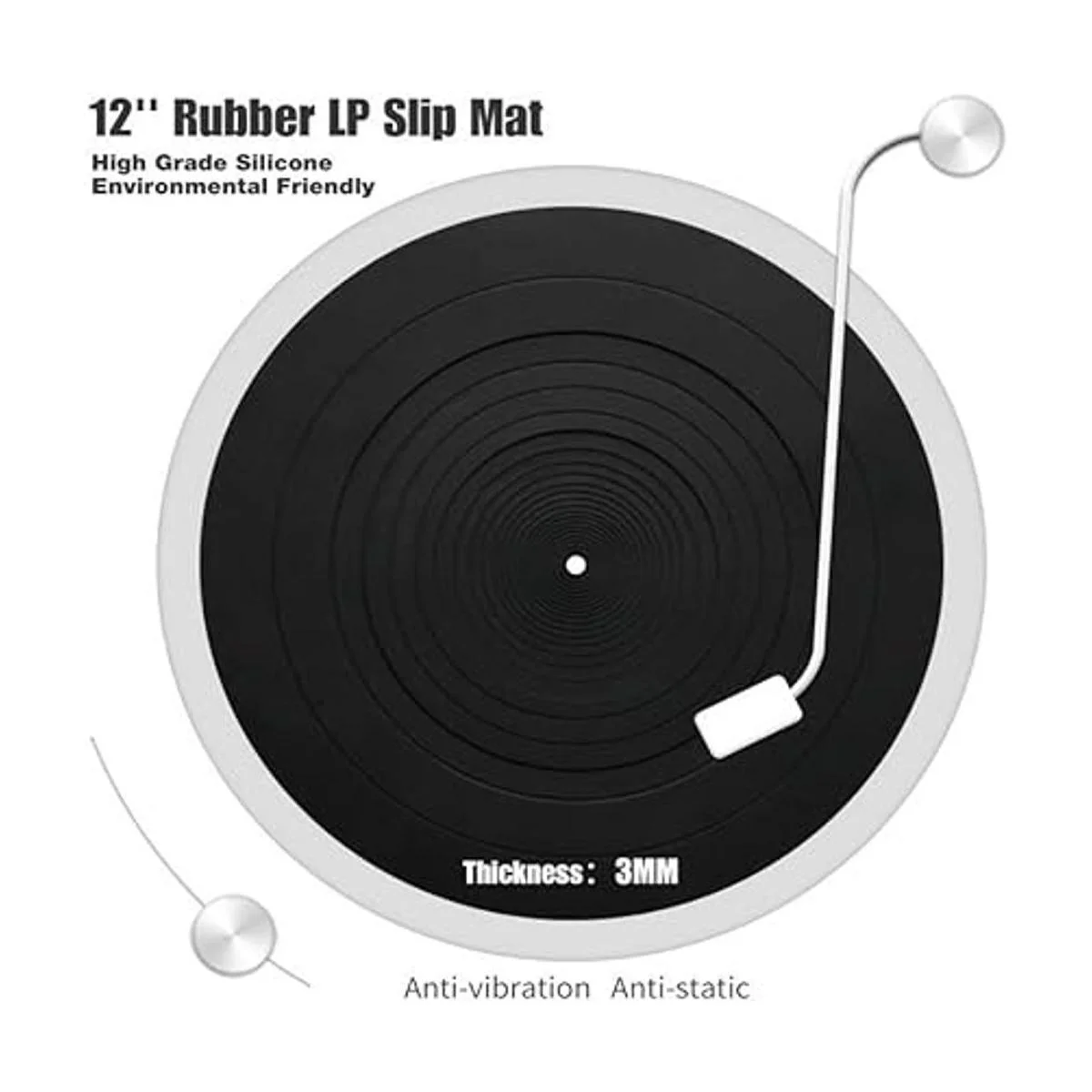 Size: Turntable Platter Mat Black Rubber Silicone Design for Universal to All LP Vinyl Record Players. Made from solid soft safety rubber, diameter is 12 inch, thickness is 3mm, Upgrade or replace any old felt, rubber or OEM turntable platter mat