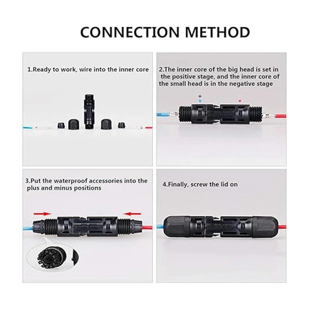 Alta capacidad de transporte: voltaje nominal de 1000 V CC, corriente nominal de 30 A y nivel de impermeabilidad IP67. Con prueba de agua y polvo es seguro para la conexión eléctrica.