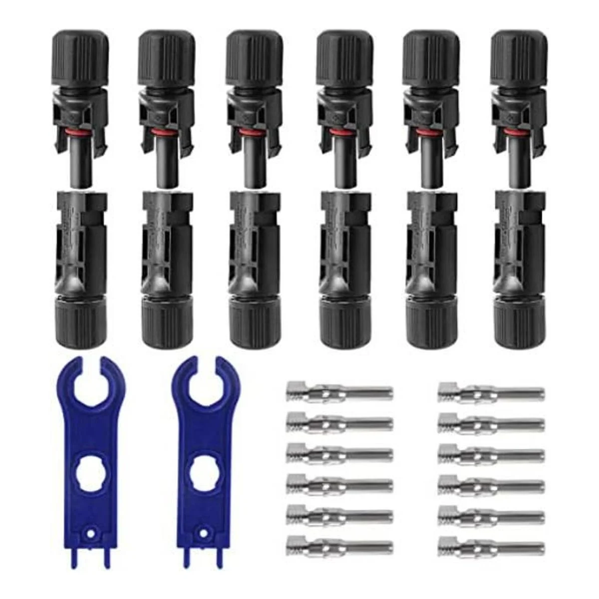 Lo que obtienes: 6 pares de conectores de panel solar macho y hembra 6 pares de pines de conector solar 1 par de llaves.