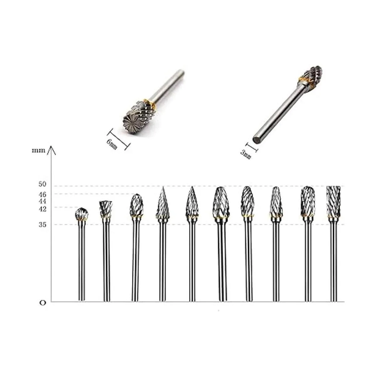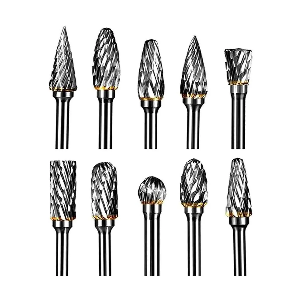 YXGOOD Juego de 10 rebabas rotativas de carburo de tungsteno de doble corte con vástago de 0.118 in y 0.236 in (1/4 pulgadas) tamaño de cabeza (estilo 1)