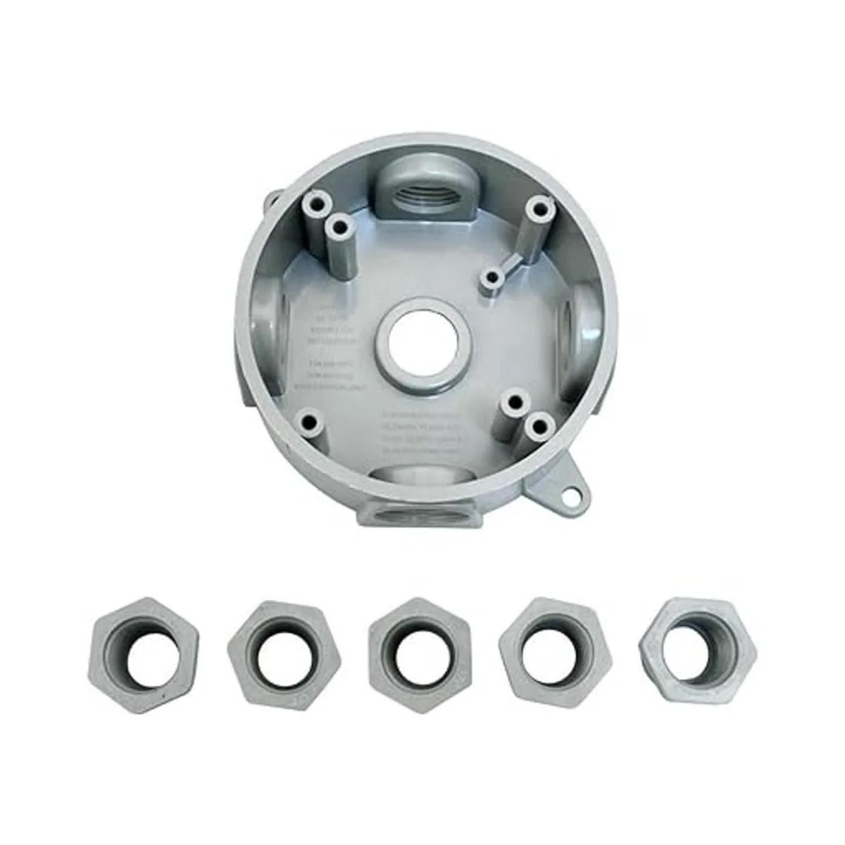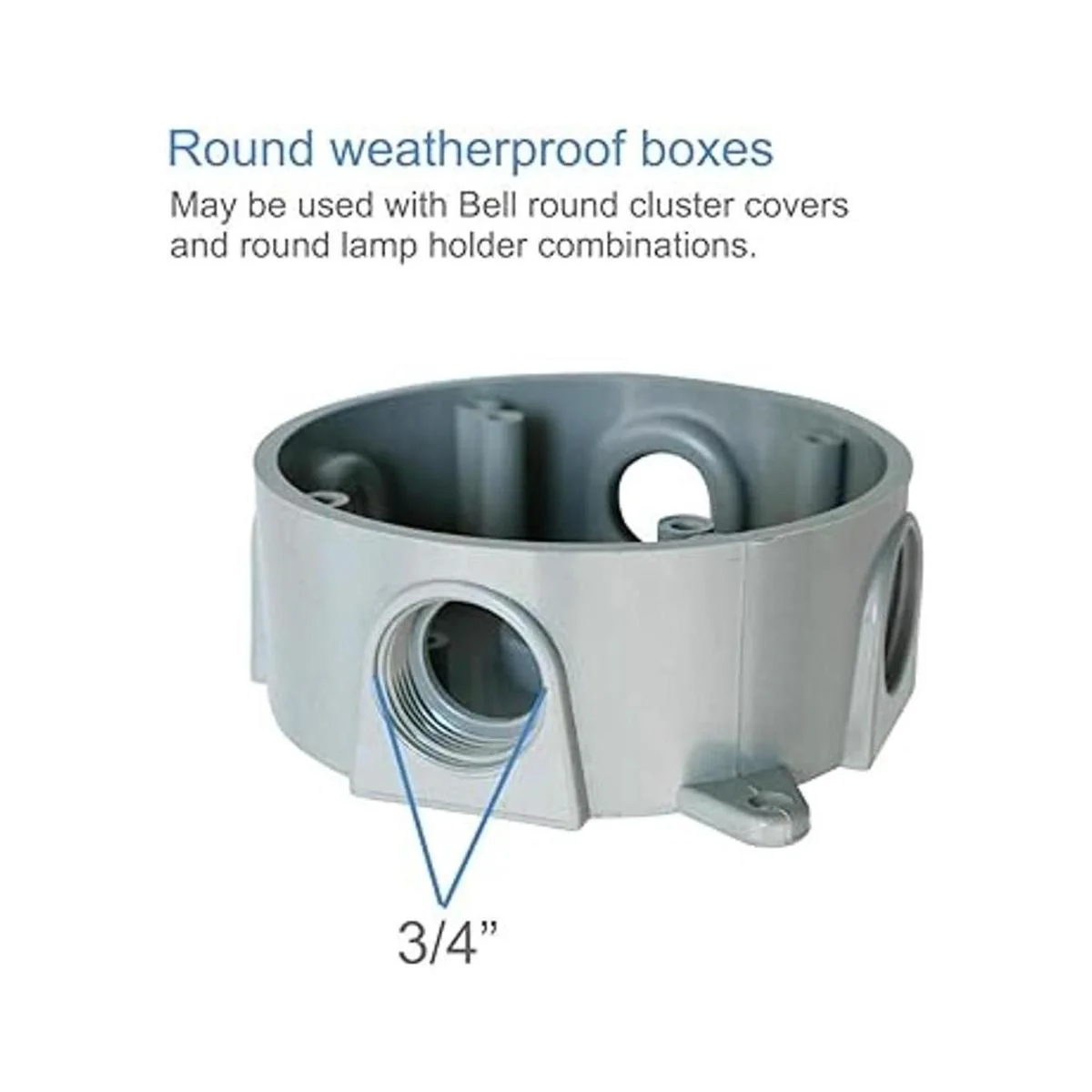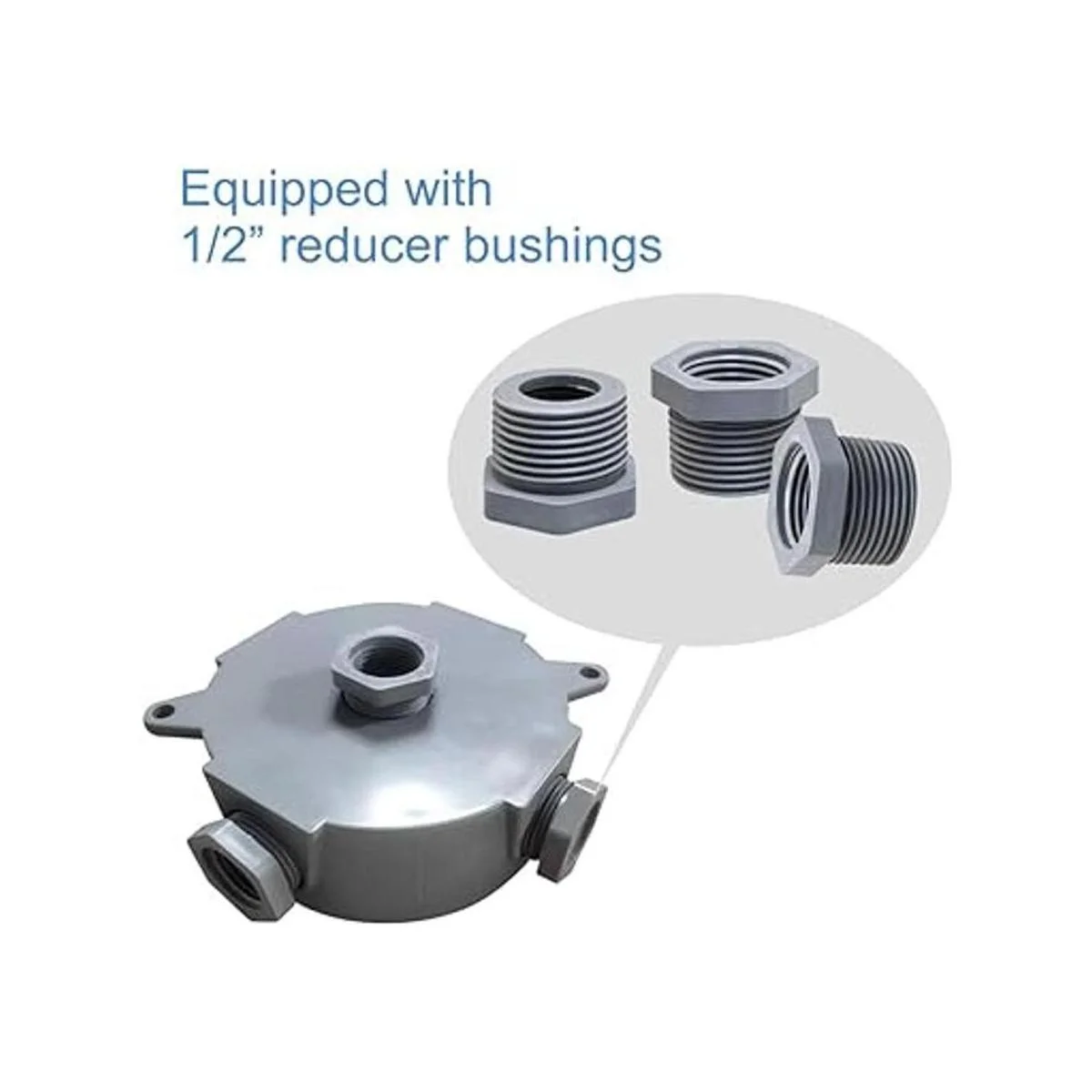 YXXTECH Caja de toma eléctrica redonda resistente a la intemperie, a prueba de sellado de 5 agujeros, 12 o 34 pulgadas, caja de salida eléctrica, certificación UL, PVC sin cubierta, gris