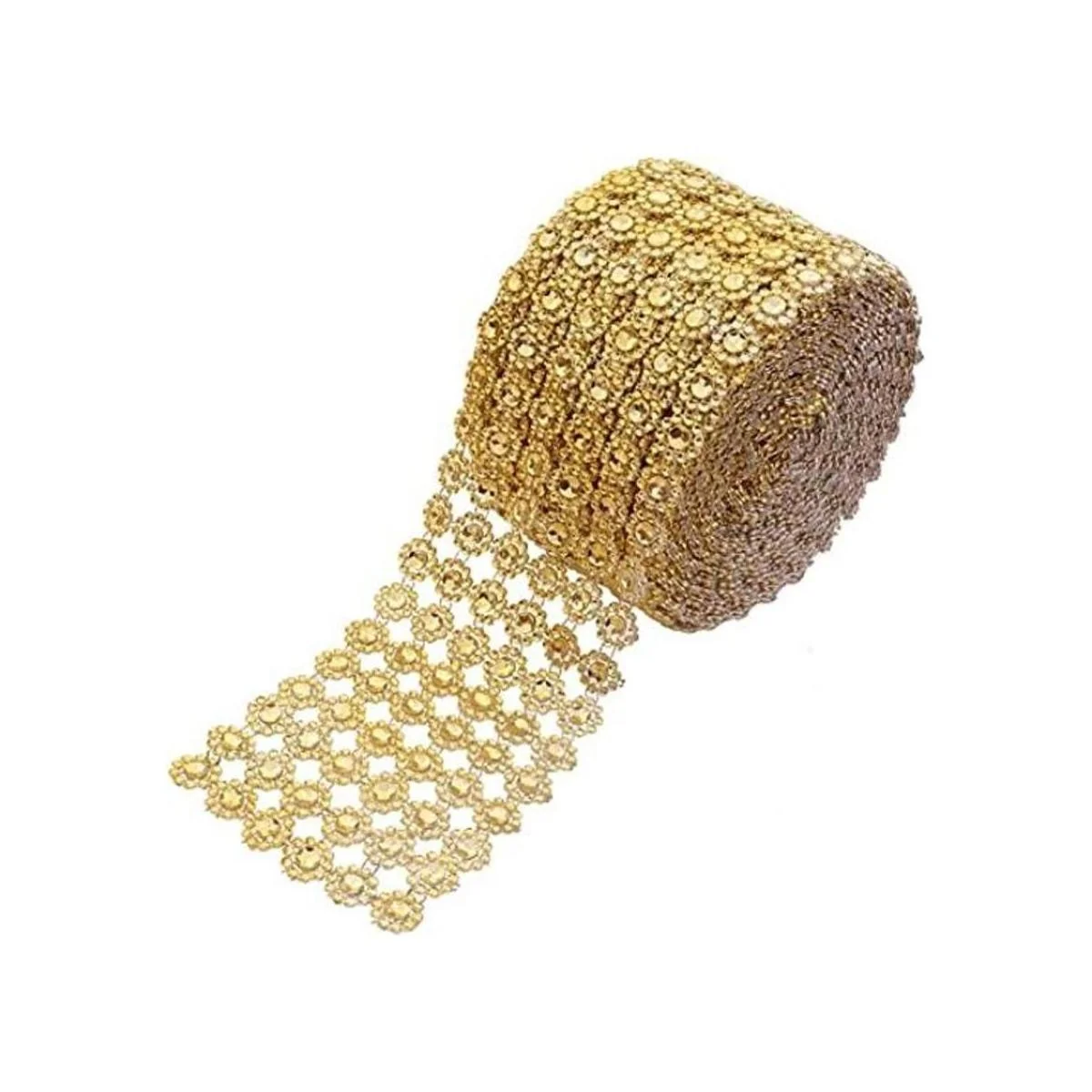 YYaaloa Crafts Rollo de cinta de malla de cristal de imitación de diamantes de imitación de 4 x 10 yardas, 6 filas de patrón de flores doradas, diamantes de imitación para bodas, fiestas, centros de mesa, pasteles, floreros dorado