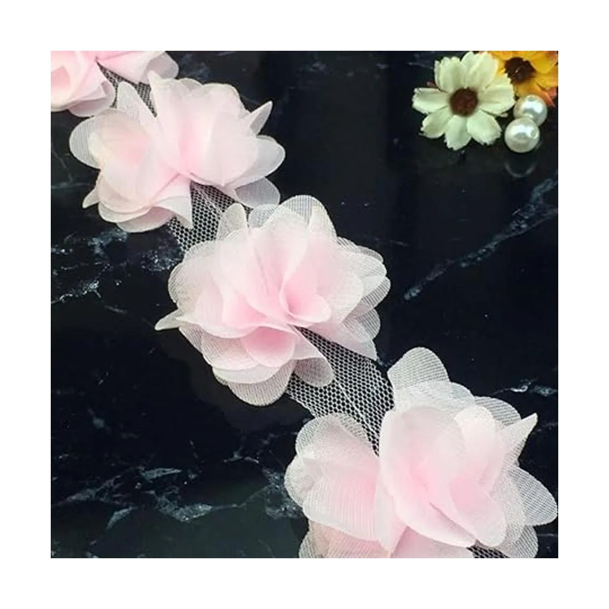 YYCRAFT 5 yardas de 2.5 pulgadas 3D de gasa con ribete de encaje, ramos de novia, ramo de flores en racimo de costura para bricolaje rosa bebé