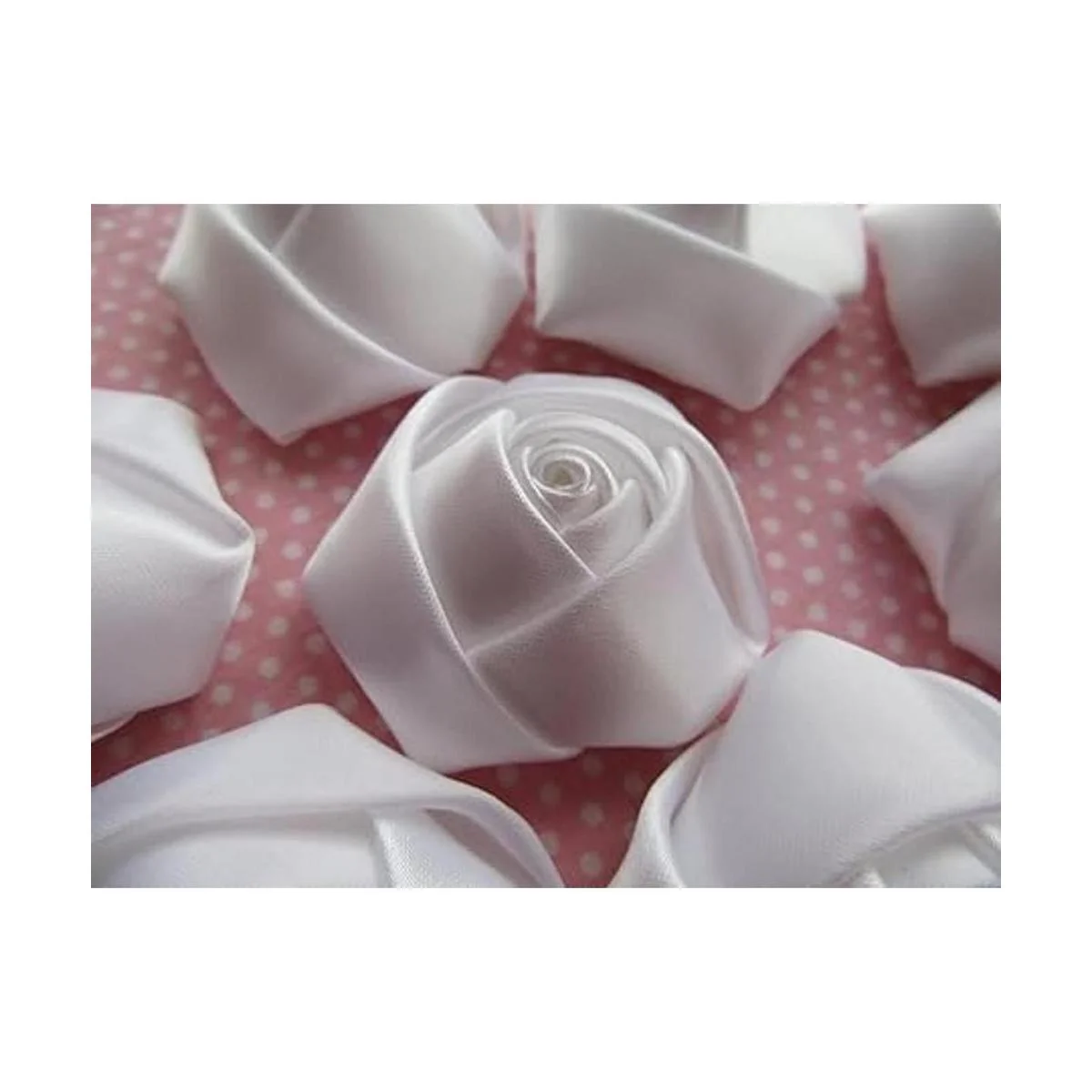YYCRAFT Paquete de 20 rosas de satén de 2 pulgadas, ramo de novia de boda, color blanco