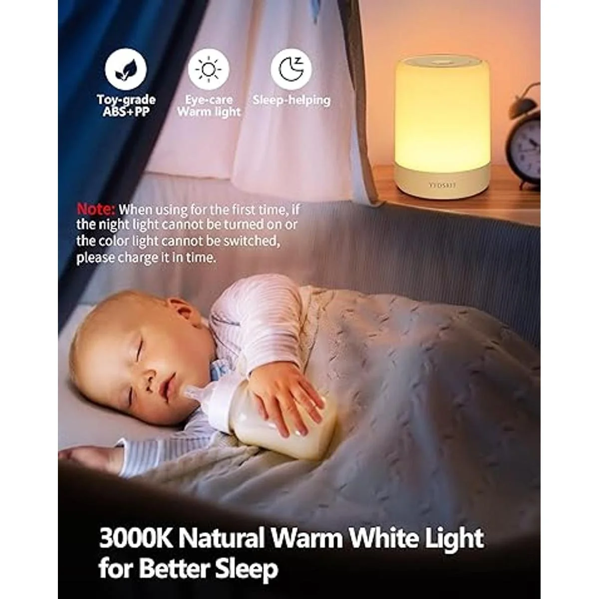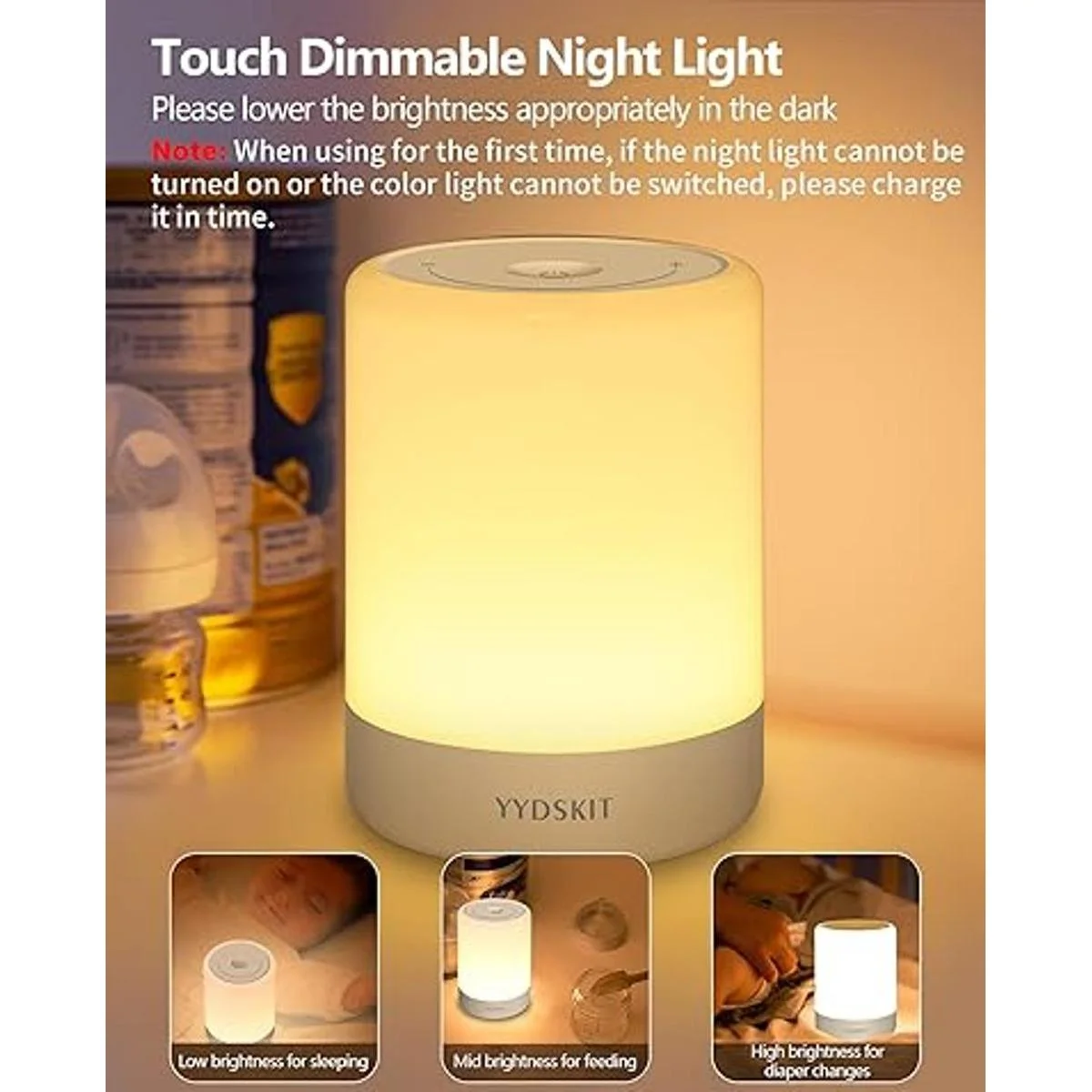 YYDSKIT Luz nocturna para guardería, luz nocturna de bebé con luz cálida regulable, 7 luces nocturnas portátiles de color personalizables, control táctil LED, lámpara de noche recargable para dormitorio de bebés y niños, ayuda al dormir