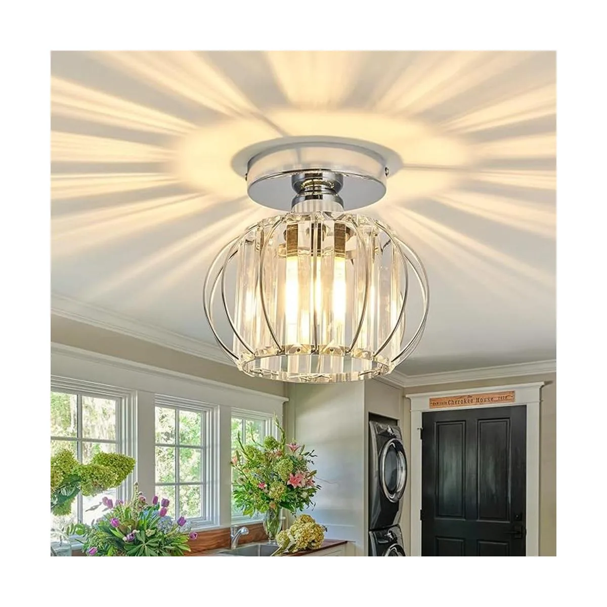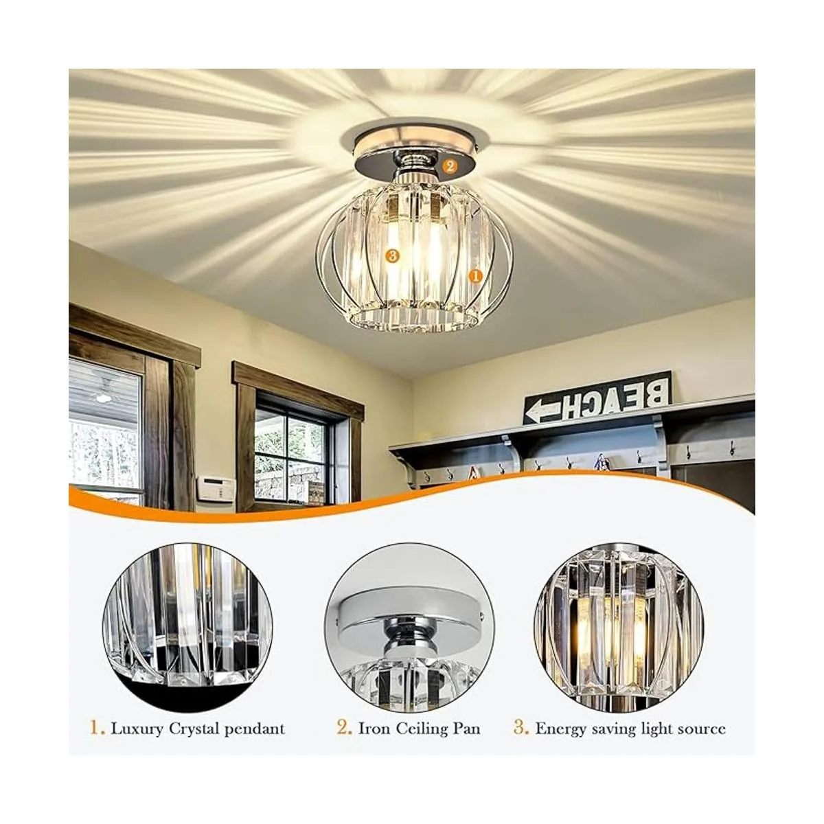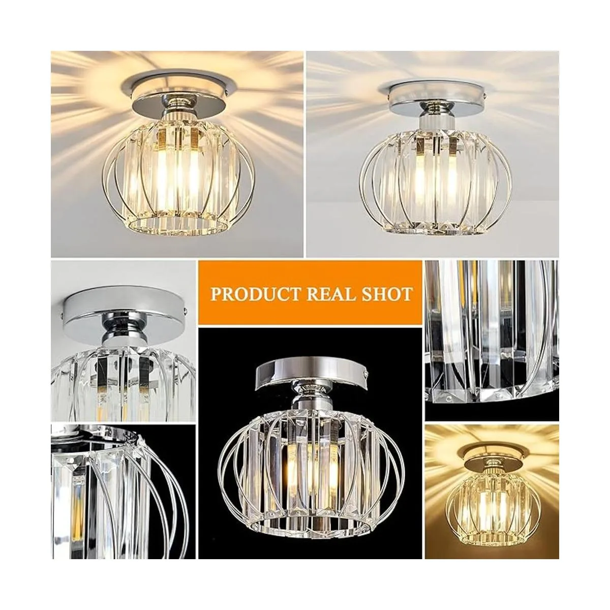 YYJLX Lámpara de techo moderna semiempotrada E26, mini candelabro de cristal cromado, pequeña lámpara de techo para entrada, dormitorio, baño, pasillo, armario, vestíbulo, plata