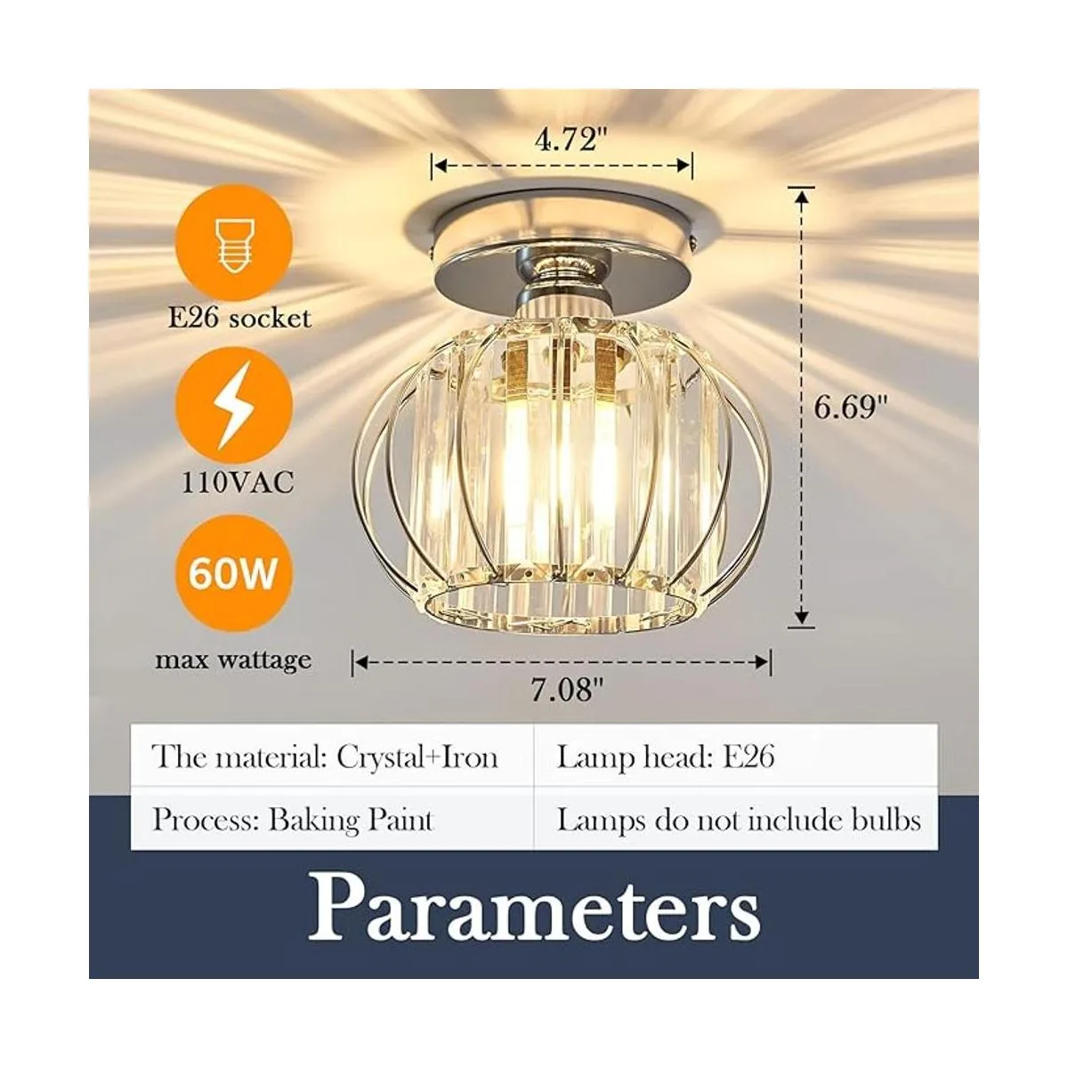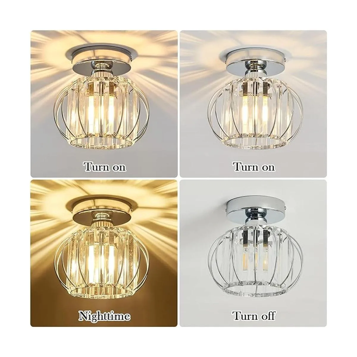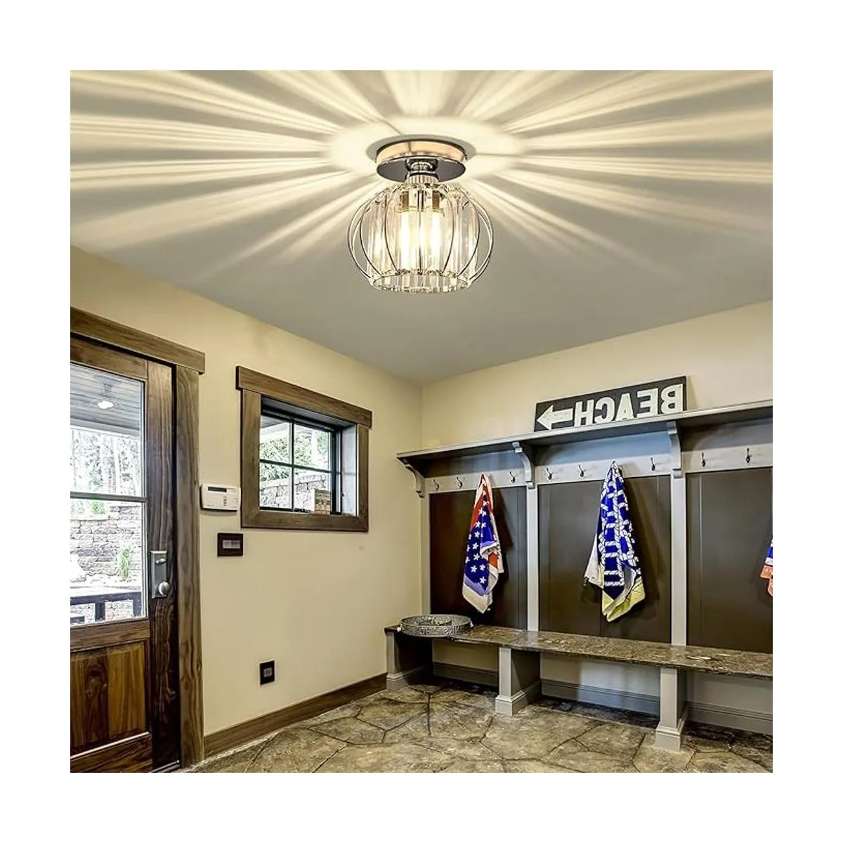 YYJLX Lámpara de techo moderna semiempotrada E26, mini candelabro de cristal cromado, pequeña lámpara de techo para entrada, dormitorio, baño, pasillo, armario, vestíbulo, plata