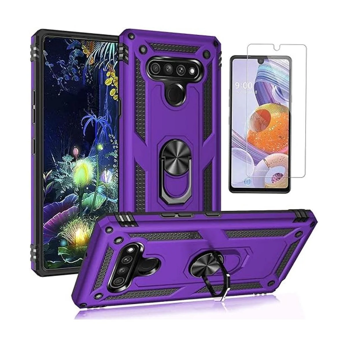 YZOK Funda compatible con LG Stylo 6, con protector de pantalla HD, funda protectora de grado militar con anillo de metal giratorio de 360 grados, funda con soporte para LG Stylo 6 morado