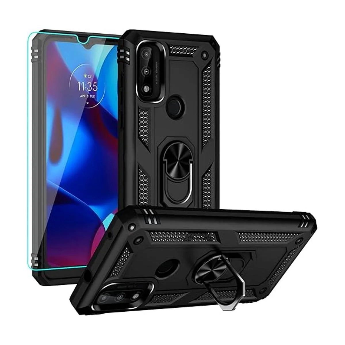 YZOK Funda compatible con Moto G Pure con protector de pantalla HD, grado militar anillo de montaje para automóvil, policarbonato duro híbrido suave TPU a prueba de golpes, funda protectora para Moto G Power 2022 negro
