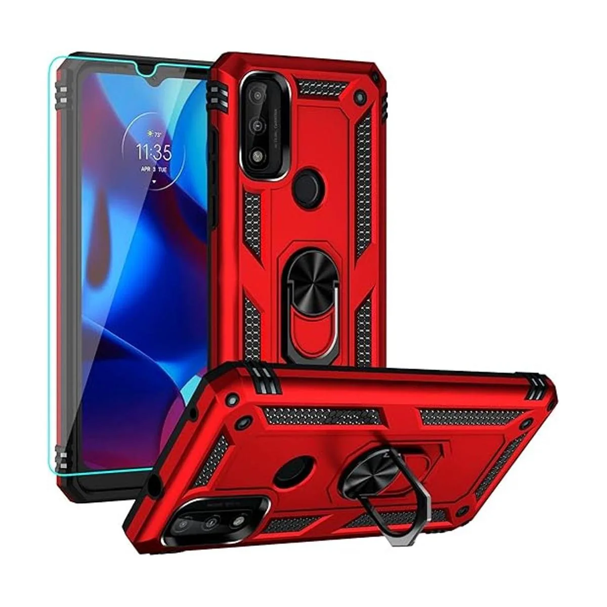 YZOK Funda compatible con Moto G Pure, funda para teléfono Moto G Pure con protector de pantalla HD, grado militar anillo de montaje para automóvil, soporte híbrido de policarbonato duro suave, TPU a prueba de golpes, funda protectora para Moto G Pure rojo